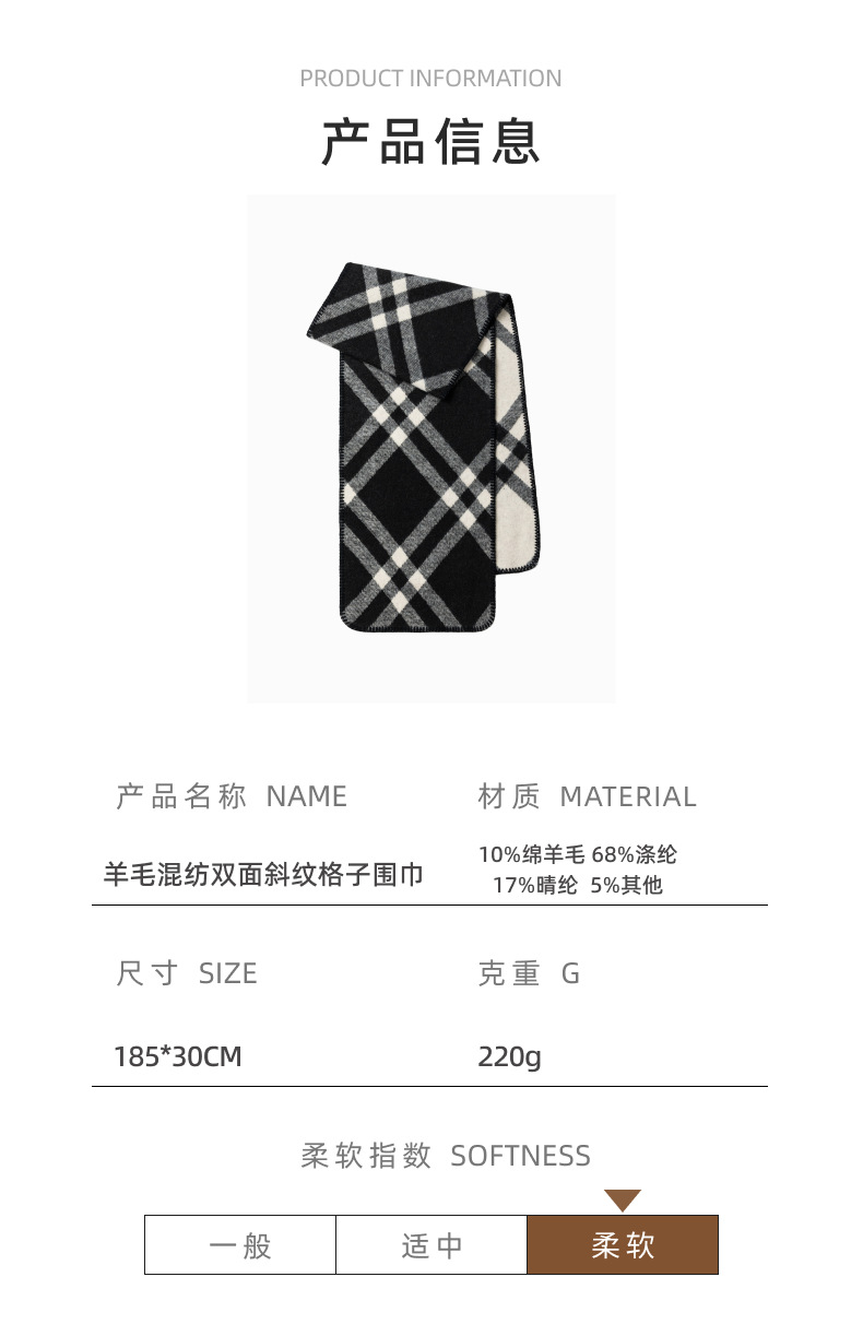 | Longitud (cm) | 185 * 30 cm; mezcla de lana al 10% |