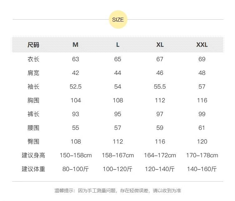 | Color | W5510 polvo (manga larga + pantalones largos), w5511 (manga larga + pantalones largos), w5512 borde gris albaricoque (manga larga + pantalones largos), 5513 borde verde albaricoque, 5509 |