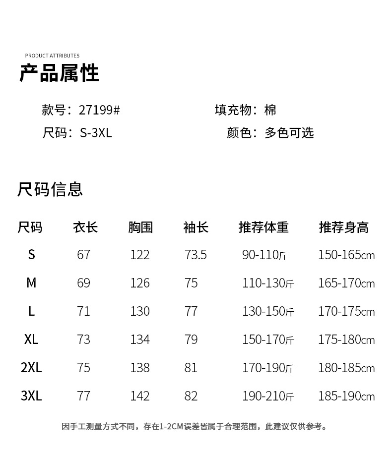 | Categoría del producto | Ropa acolchada de algodón / acolchada de algodón |