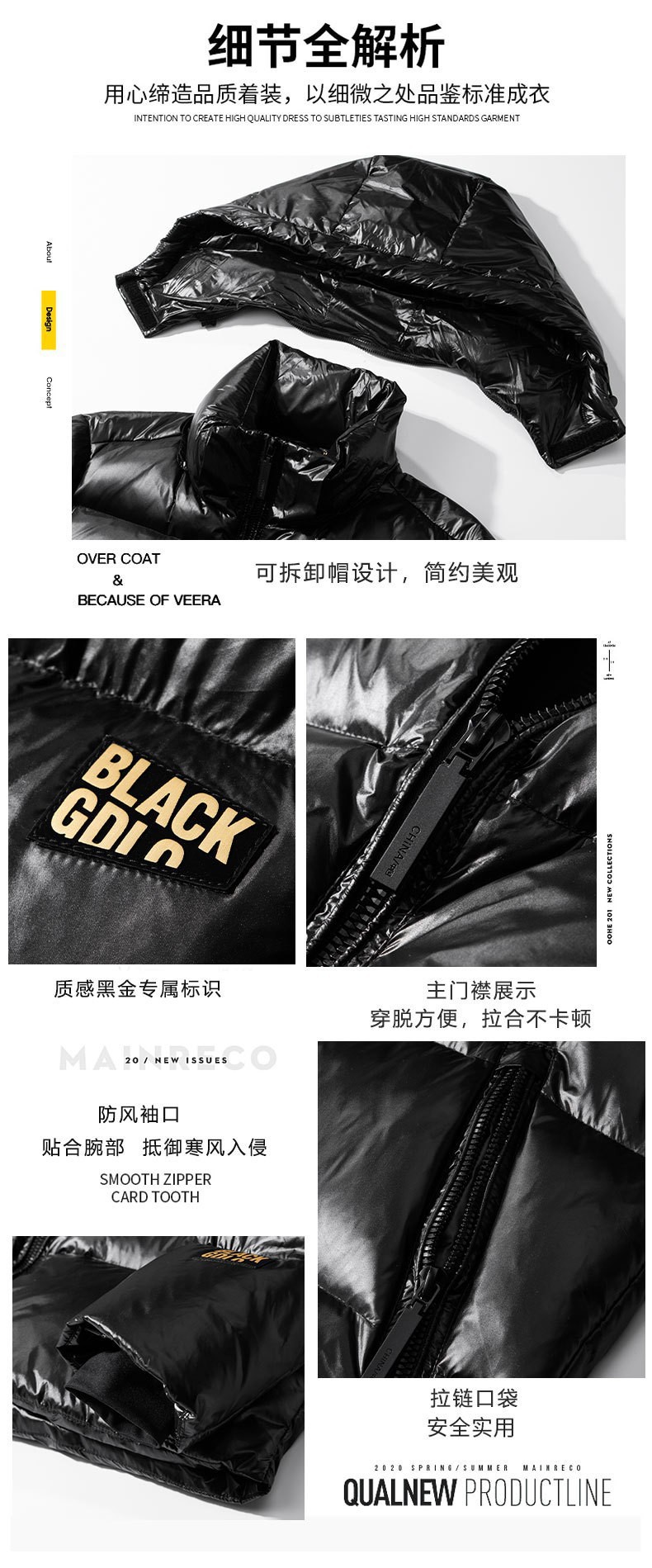 | Número de artículo | Chaqueta de plumón de oro negro |