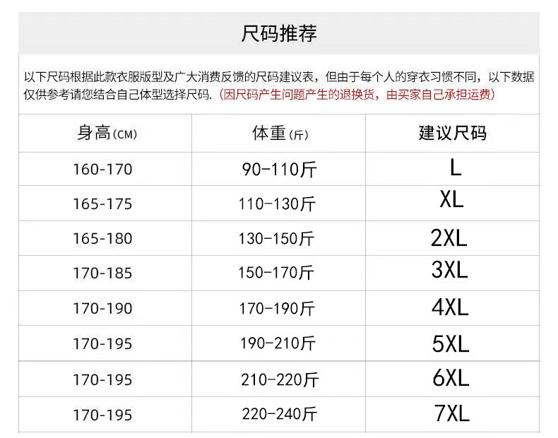 | Talla | L,XL,2XL,3XL,4XL,5XL,6XL,7XL |