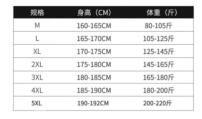 | Tamaño | M,L,XL,2XL,3XL,4XL,5XL |