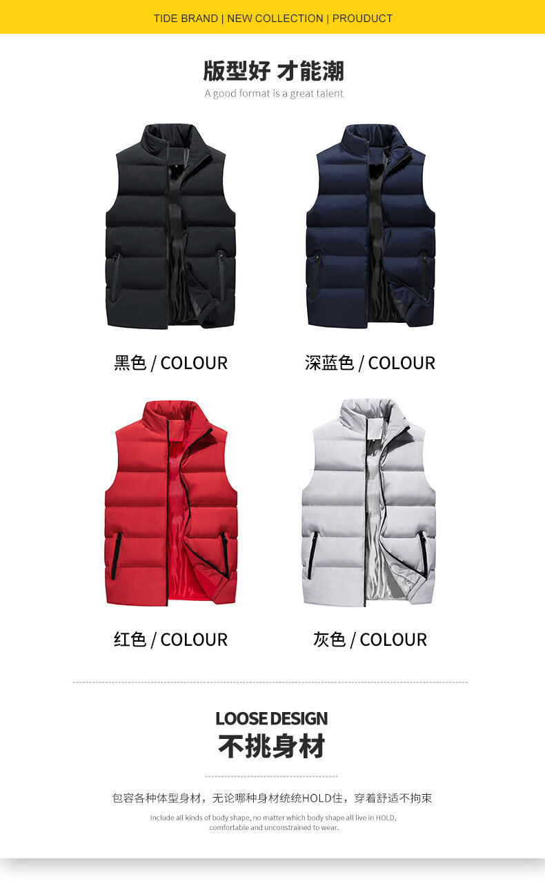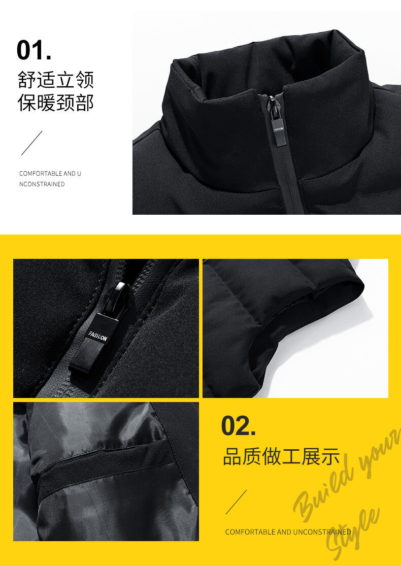 Chaleco de los hombres de otoño e invierno nueva moda abrigo de los hombres Chaleco Corto chaleco caliente sin mangas abajo algodón soporte collar abrigo