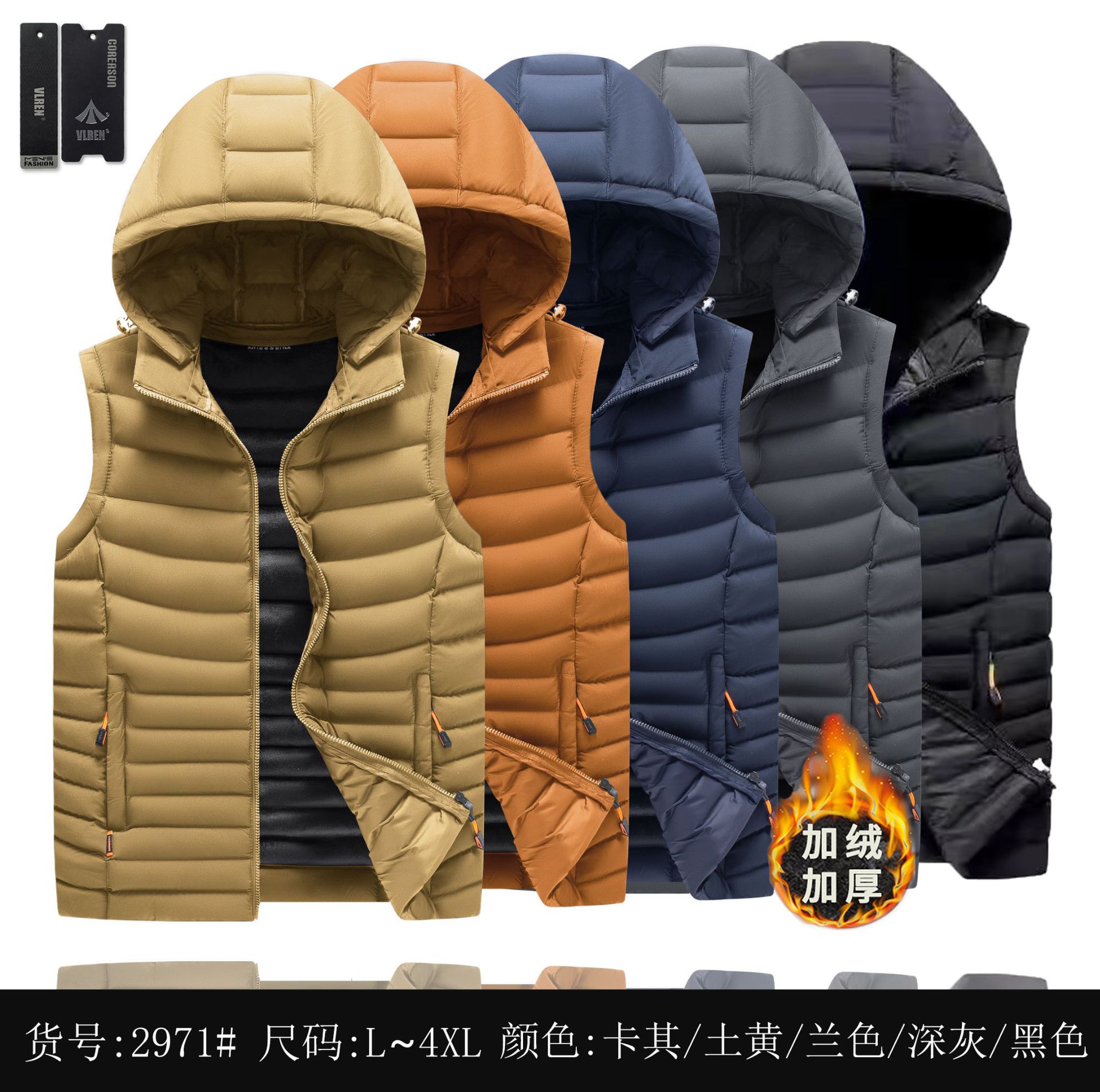 2023 nuevo chaleco de los hombres transfronteriza Venta caliente Chaleco de algodón más tamaño chaleco otoño e invierno abrigo de los hombres con capucha logotipo forrado de lana