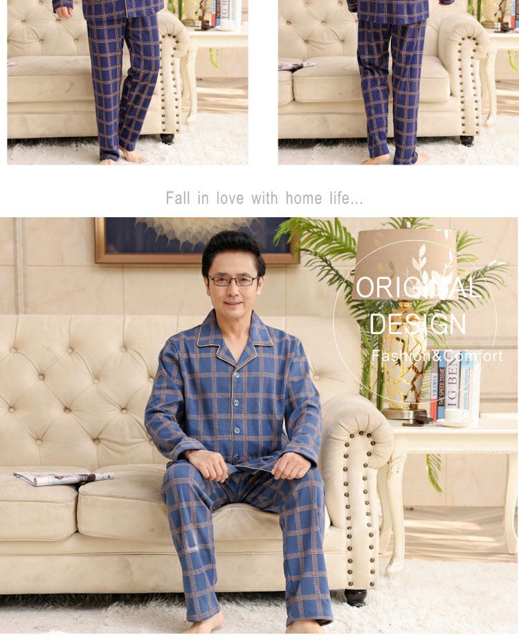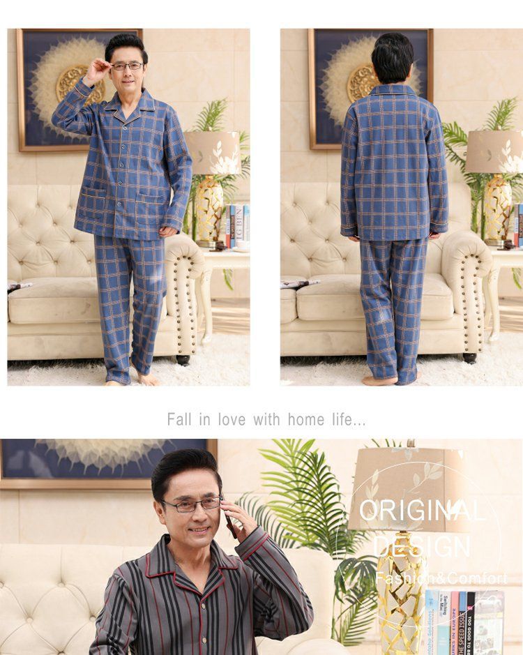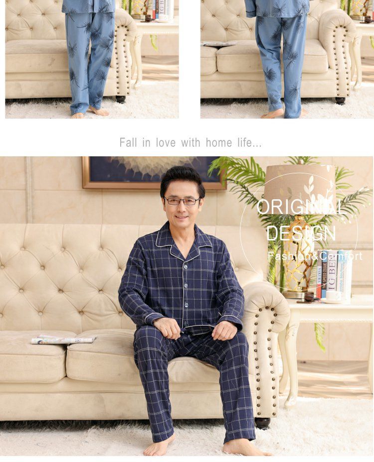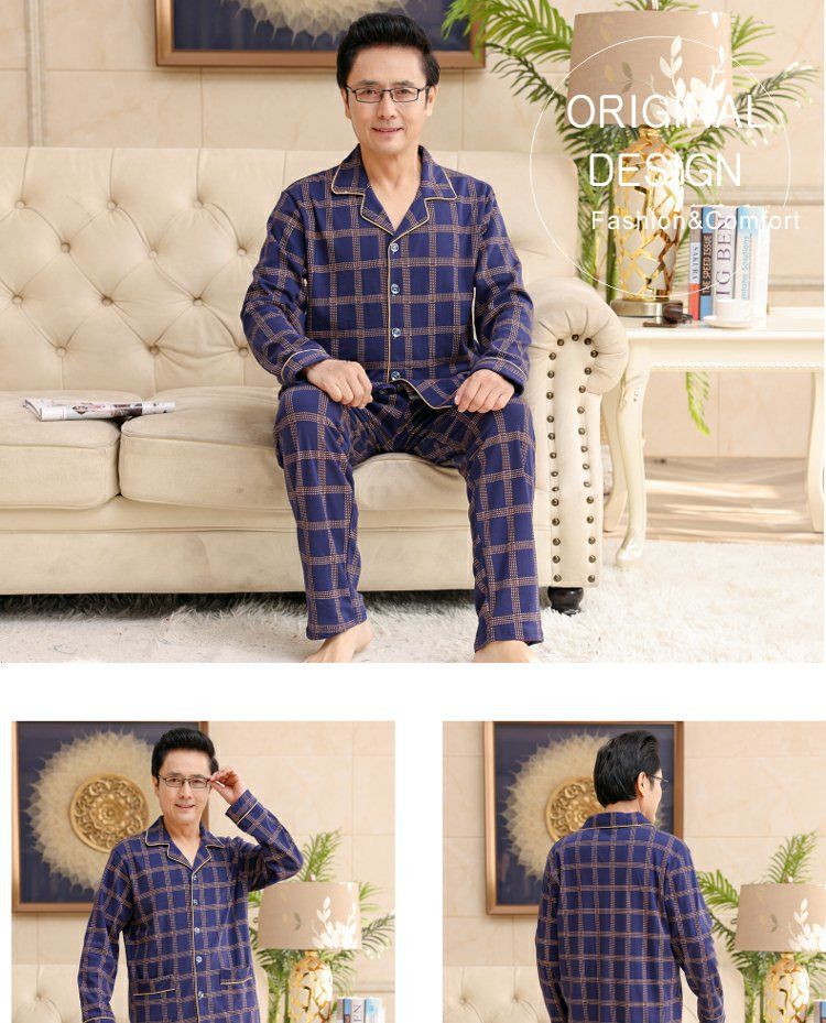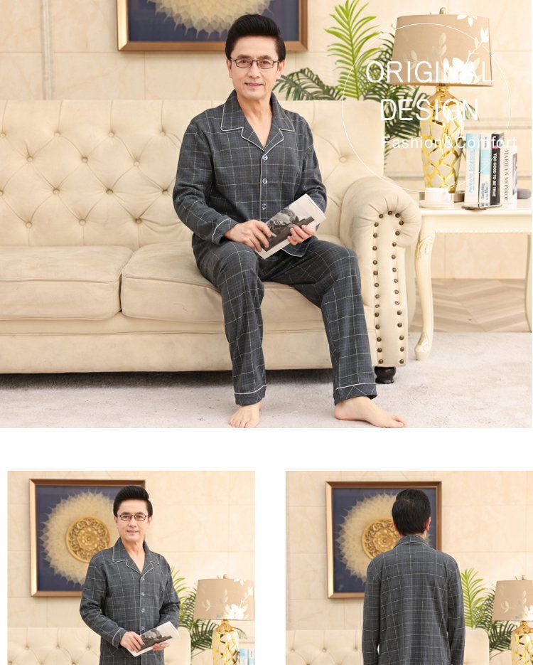 面料主材质:棉 尺码:M【适合80-100斤】 L【适合100-130斤】 XL【适合130-160斤】 2XL【适合160-180斤】 3XL【适合180-200斤】 4XL【适合200-220斤】 面料俗称:纯棉 图案:格子 家居服风格:简约 领型:小翻领 适用性别:男 衣门襟:前扣 件数:2件 颜色分类:MT7302 MT7301 MT7303 MT7304 MT7305 MT7306 MT7308 MT7310 MT7311 MT7312 MT7313 MT7314 MT7315 MT7316 MT9601 MT9602 MT9603 MT9604 MT9605 MT9606 MT9607 MT9608 裤门襟:皮筋 成分含量:95%以上 适用季节:春季 袖长:长袖 厚薄:常规 适用场景:休闲家居 服装款式细节:印花 适用对象:中年 裤长:长裤