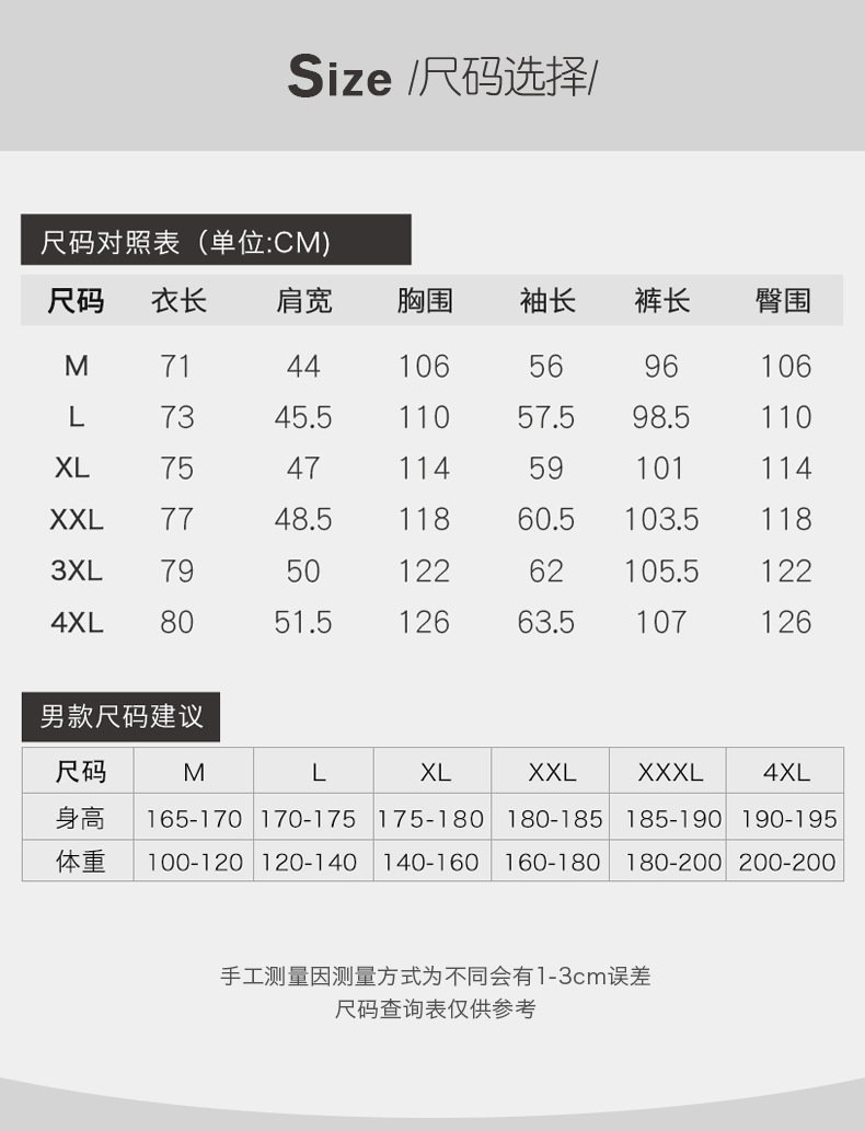 | Tamaño | 165(M),170 litros),175(XL),180(XXL),185(XXXL),190(4XL) |