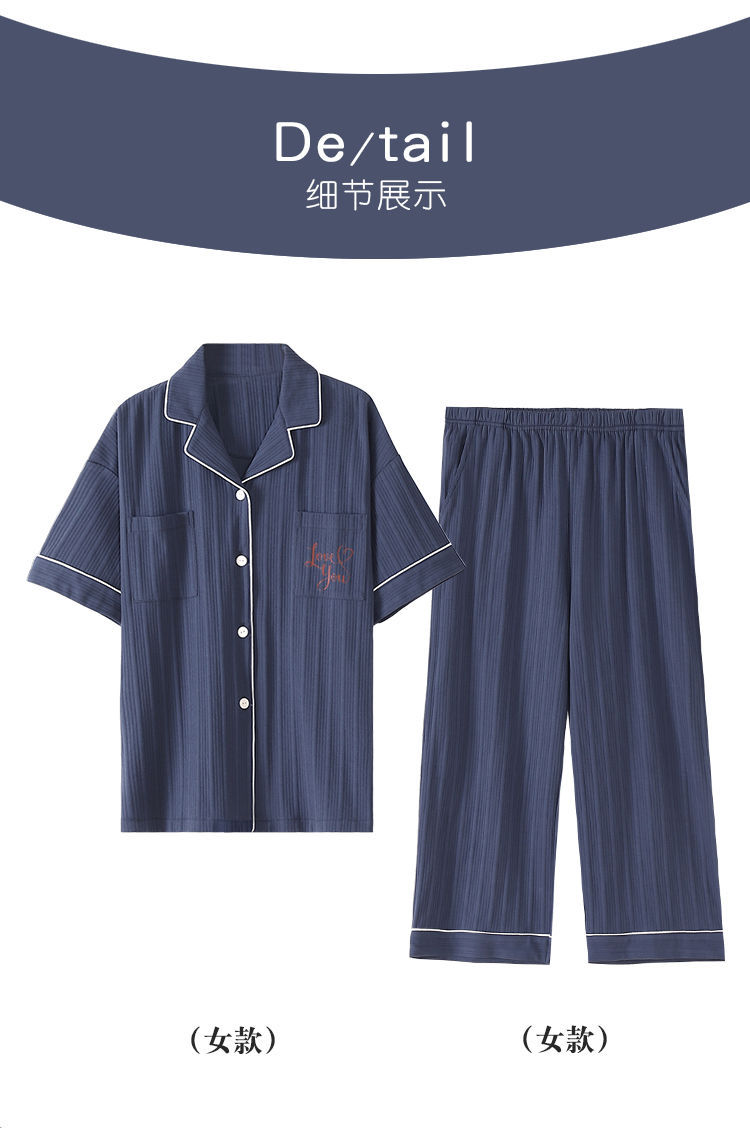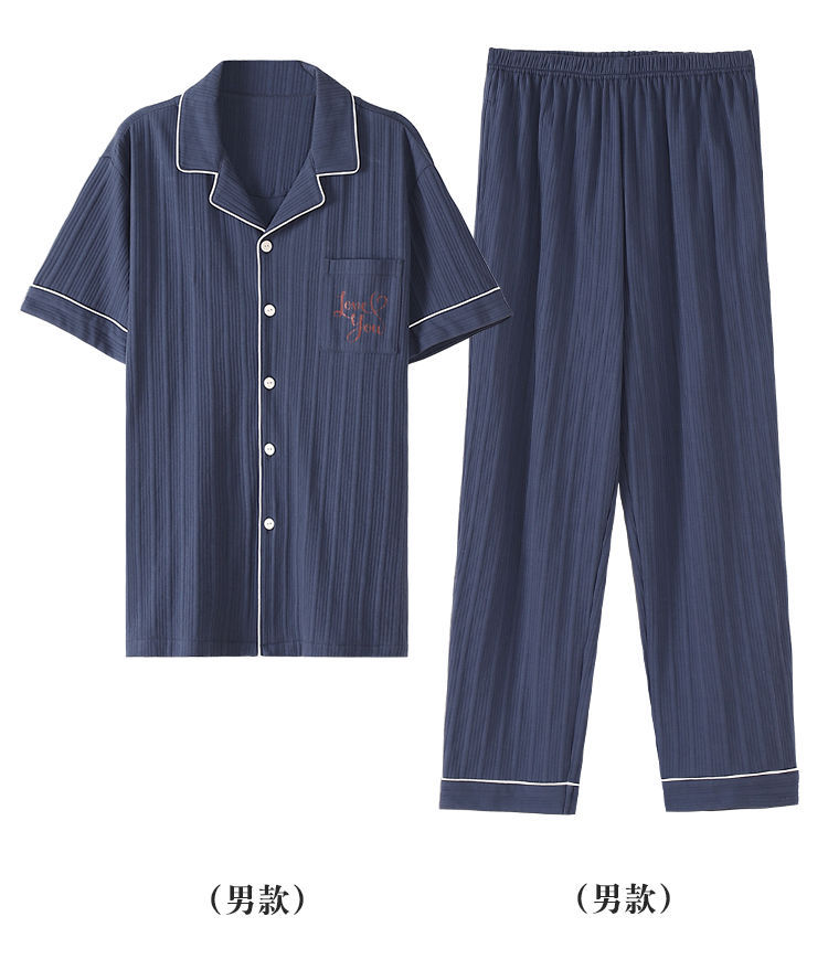 南极人情侣纯棉睡衣男士春夏季短袖长裤薄款夏天女全棉家居服套装