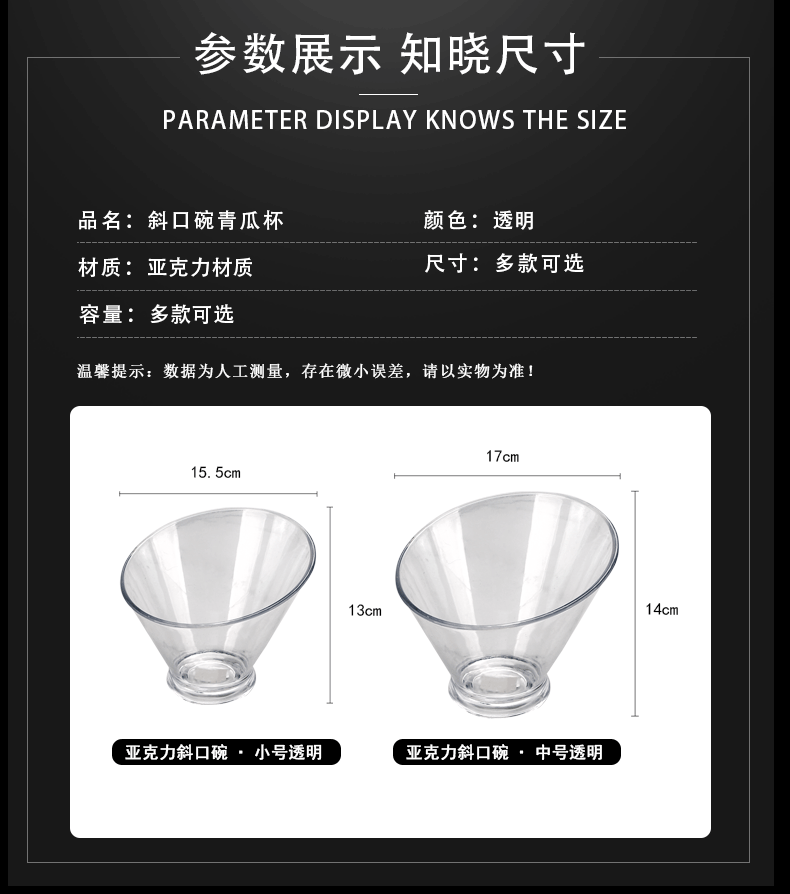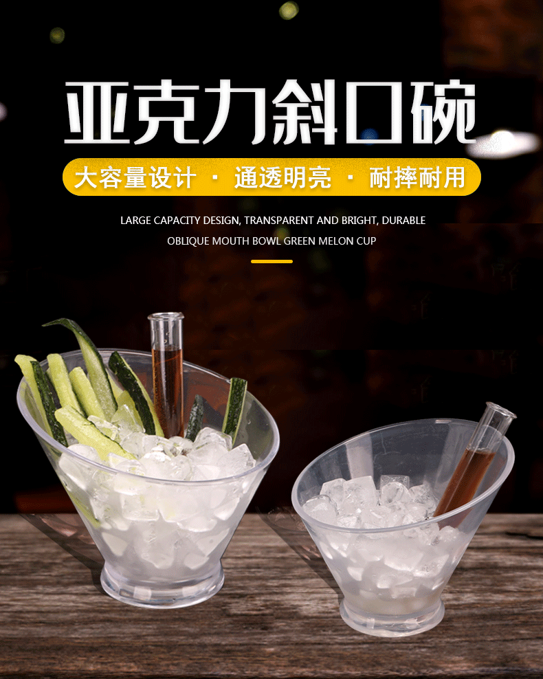 Acrílico de estilo japonés tira de pepino cuenco comercial helado de pepino barra de la taza placa del tubo de ensayo tazón oblicuo plato de fruta seca plato de merienda
