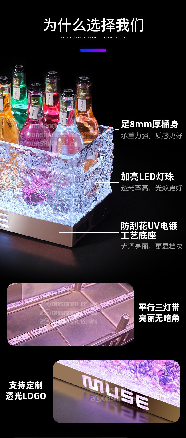 Barras transfronterizas cubo de hielo luminoso KTV cubo de cóctel acrílico cubo de champán cubo de hielo led marco de cerveza luminosa