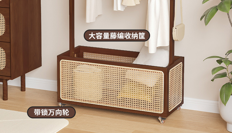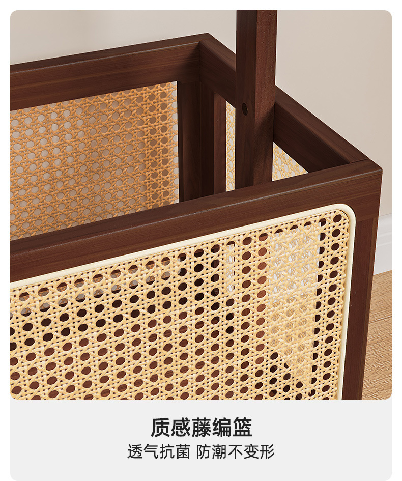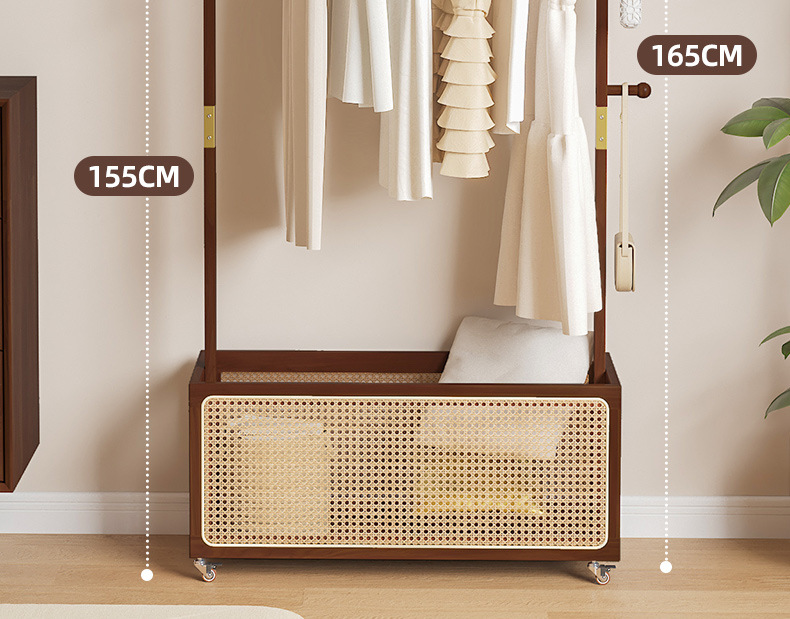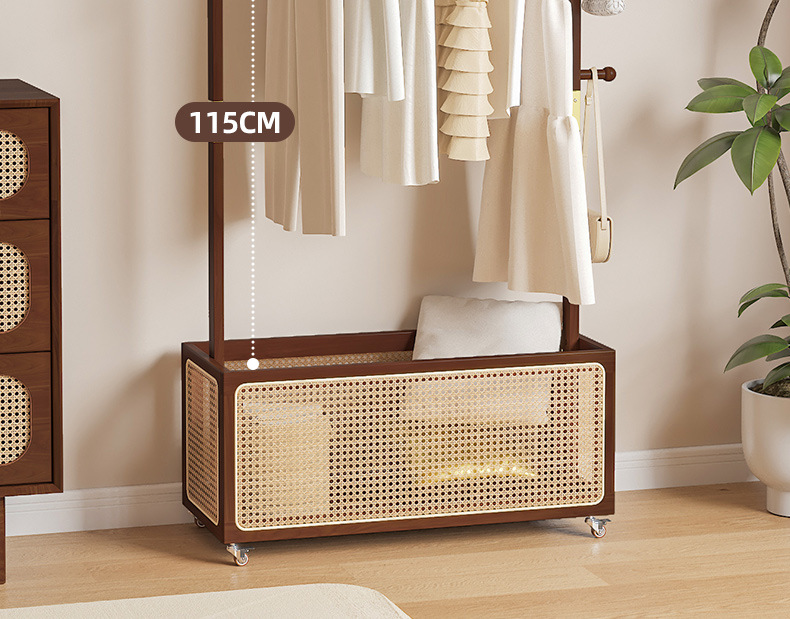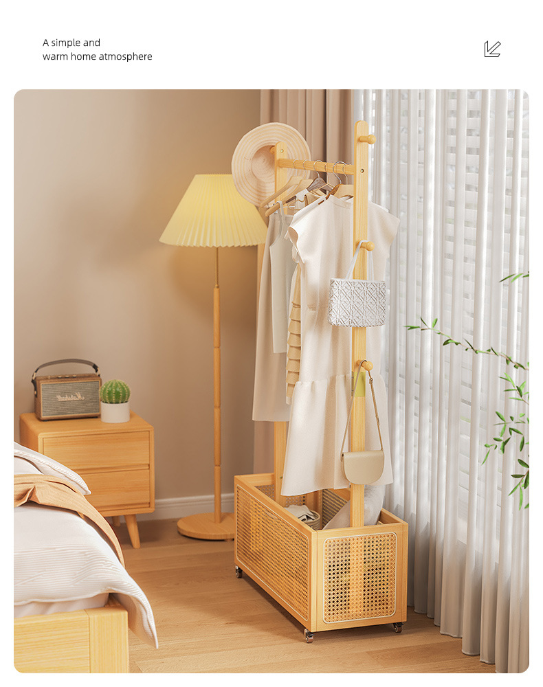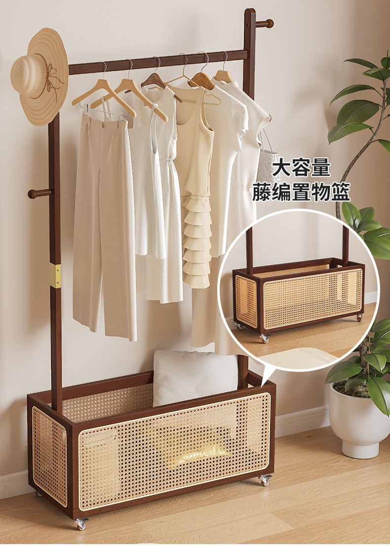 Percha de ratán de madera maciza, dormitorio, piso, sala de estar, hogar, estante de ropa junto a la cama, percha extraíble, canasta de ropa sucia