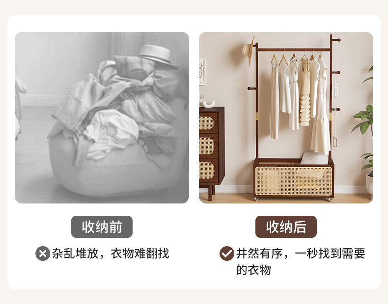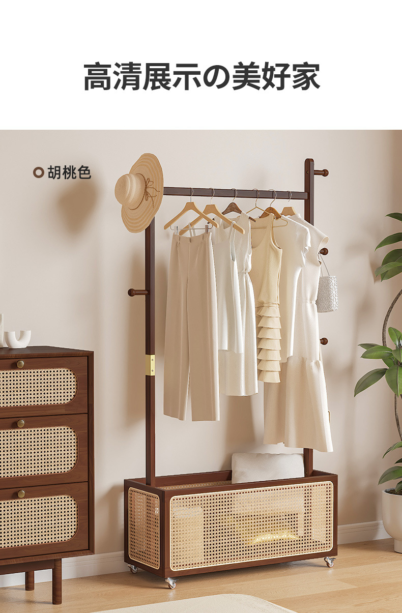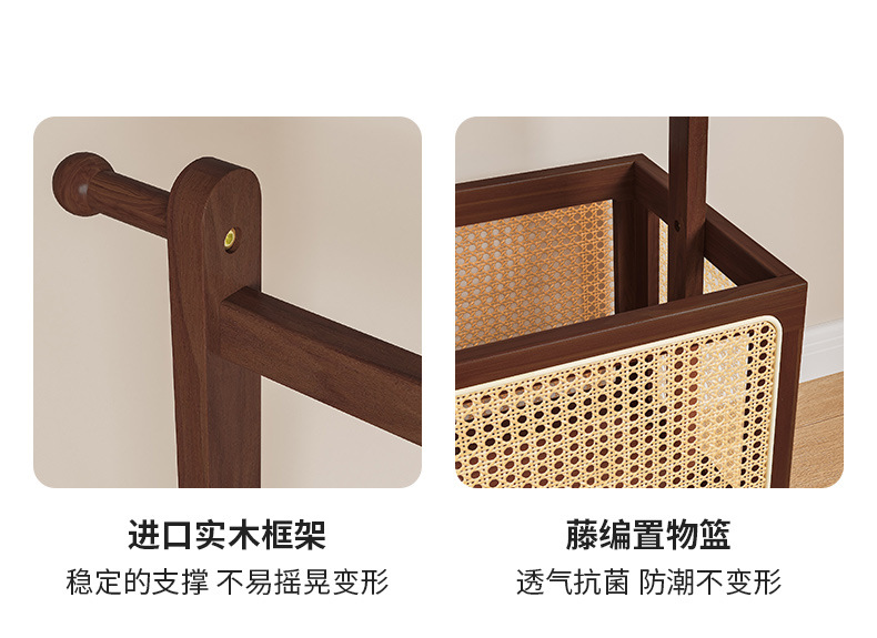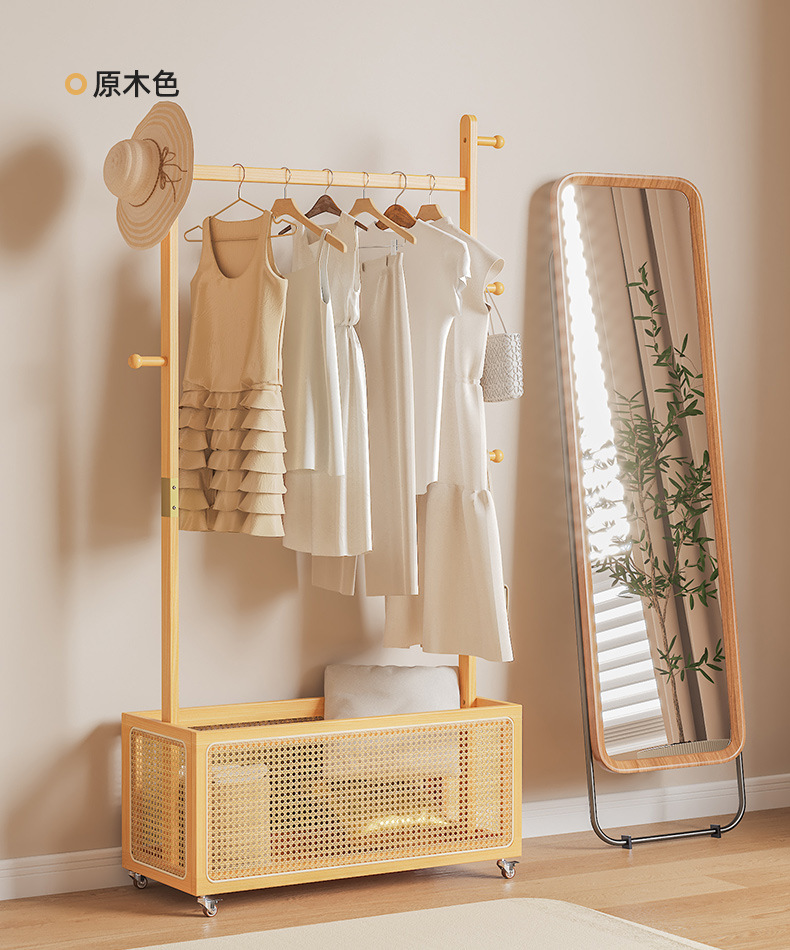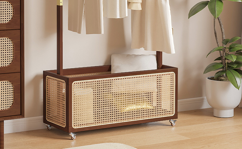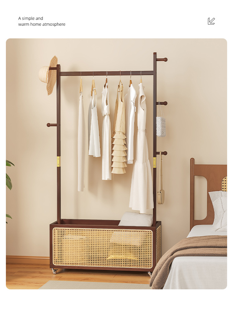 Percha de ratán de madera maciza, dormitorio, piso, sala de estar, hogar, estante de ropa junto a la cama, percha extraíble, canasta de ropa sucia