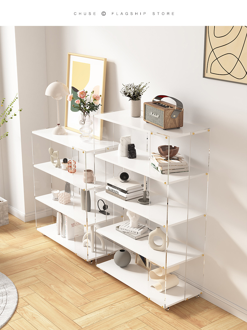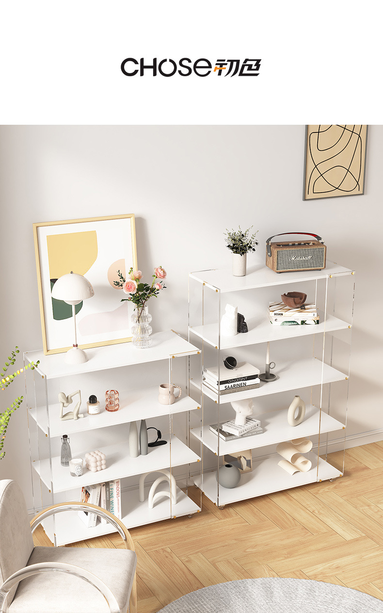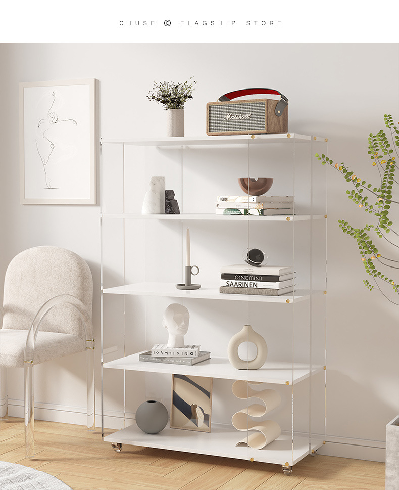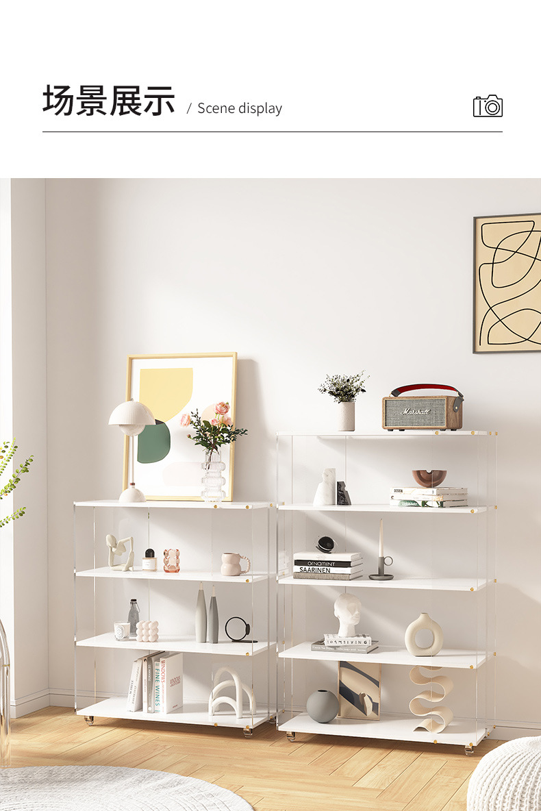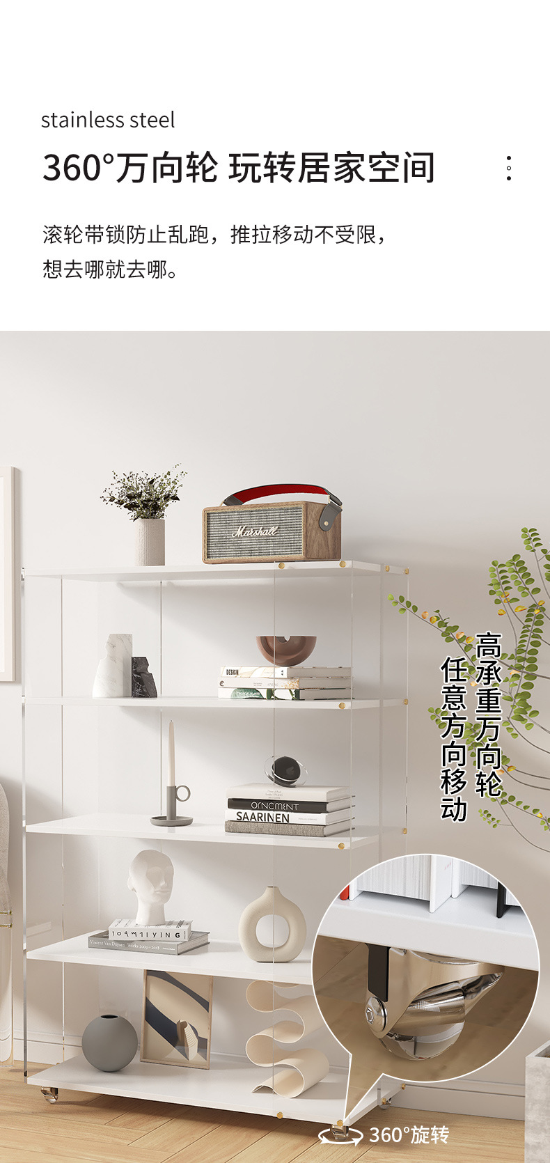 Nueva estantería giratoria de piso con polea ancha de acrílico simple, estante de almacenamiento multiusos móvil multicapa