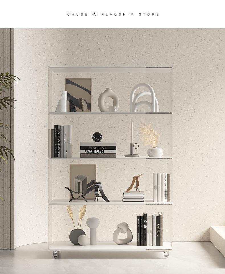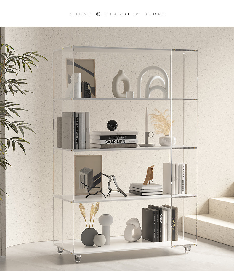 Nuevo estante giratorio de acrílico simple para libros, de pie, con ruedas anchas, de varias capas, móvil y multiusos.
