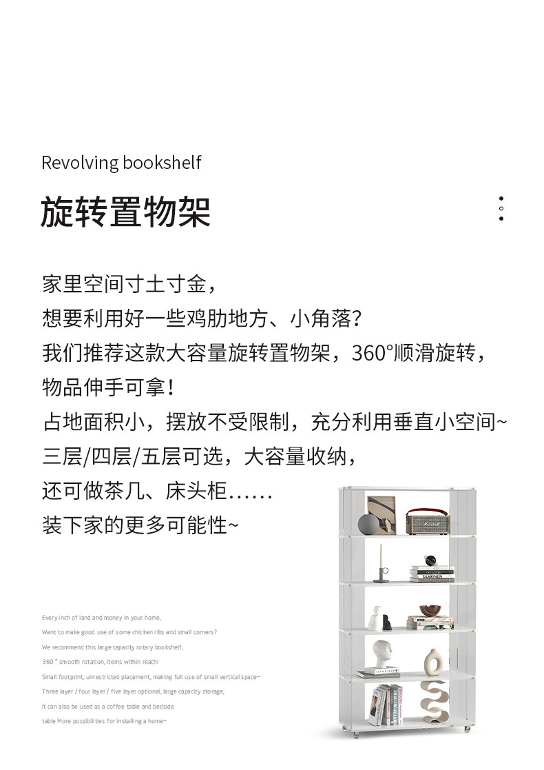Original creativo de madera maciza giratoria estantería transparente acrílico piso almacenamiento estante salón estudio esquina