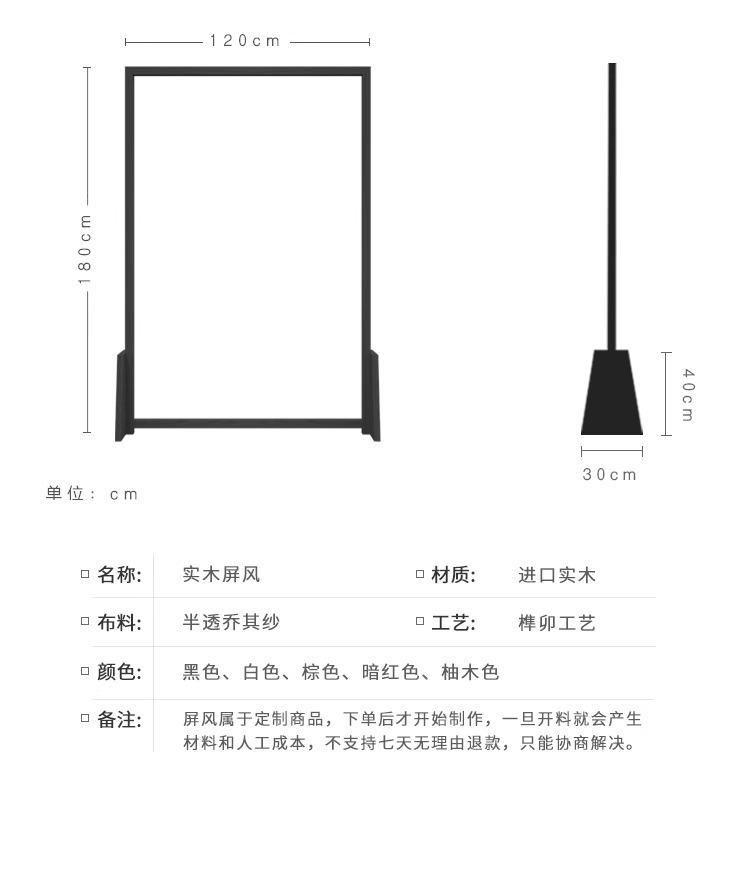 | Tamaño | Ancho 80 cm * alto 180 cm, ancho 100 cm * alto 180 cm, ancho 120 cm * alto 180 cm, ancho 100 cm * alto 100 cm (base) |