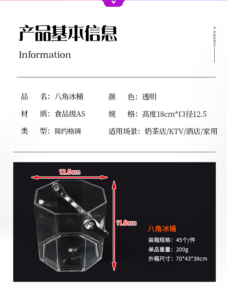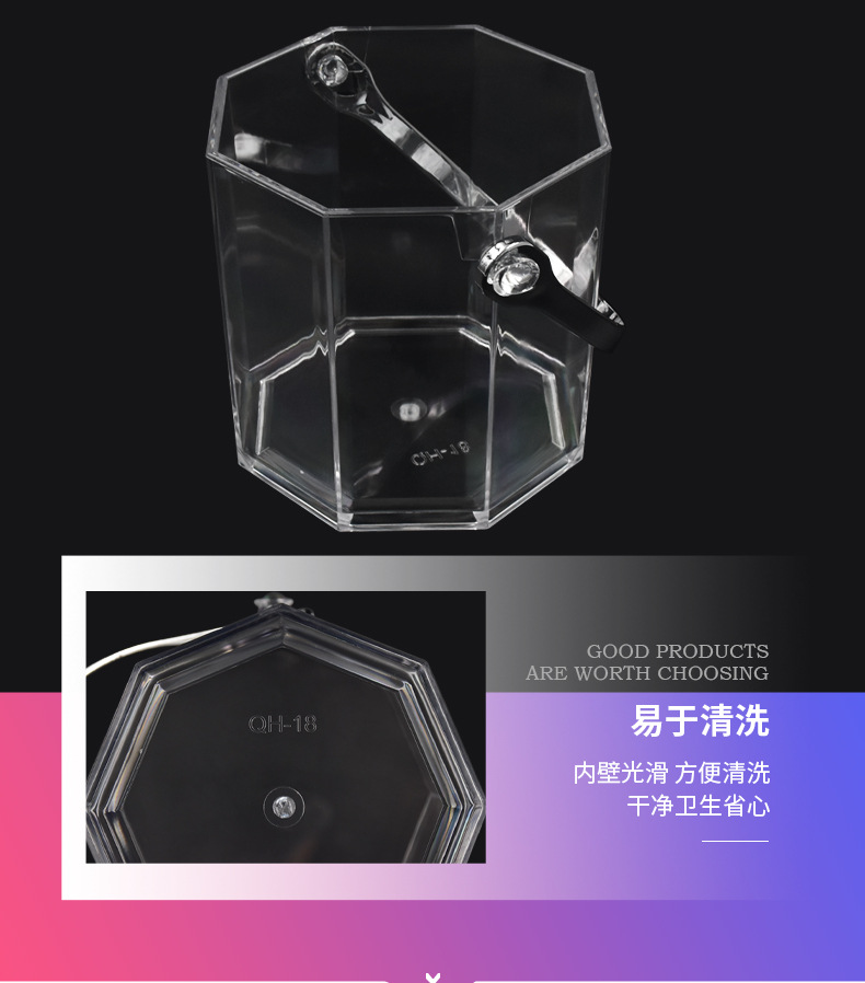 Cubo de hielo octogonal transparente Cubo de vino de champán de plástico para el hogar Bar del hotel Cubo de hielo KTV Cubo helado Cubo de cerveza
