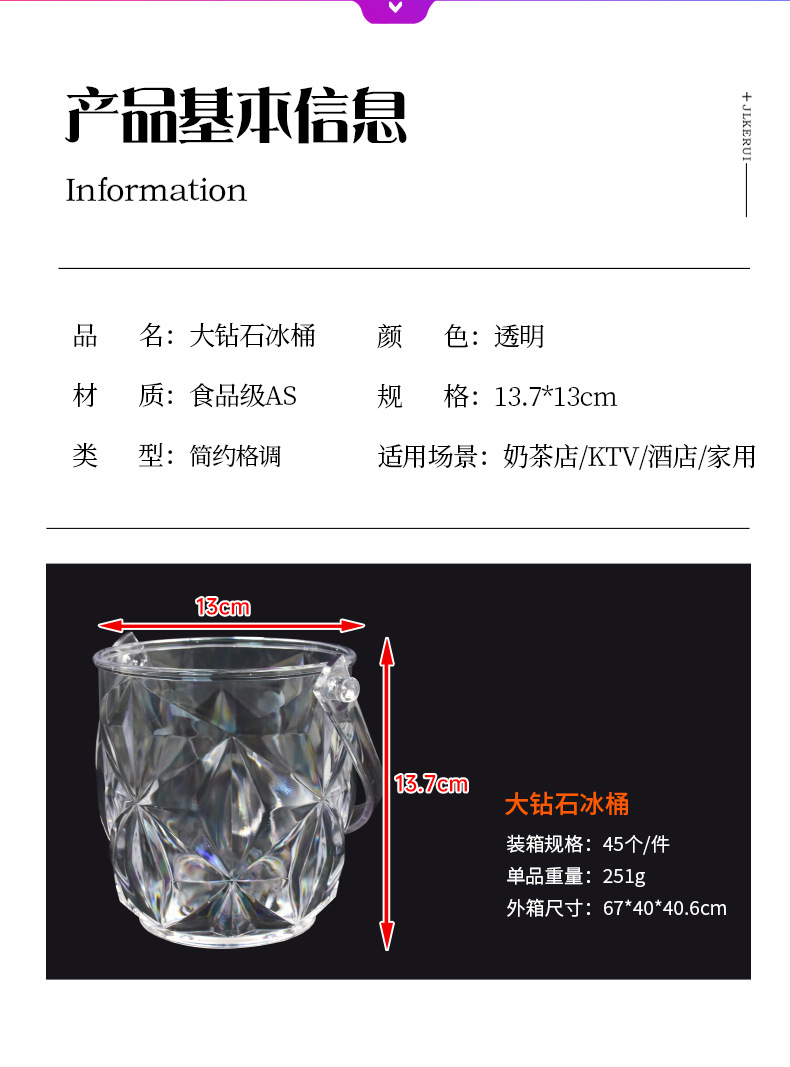 Gran barril de hielo tipo diamante KTV barril de champán barril de hielo barril de plástico con mango