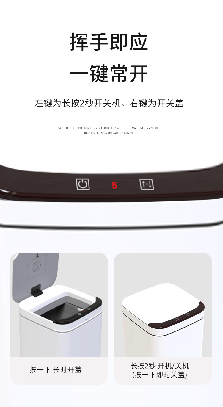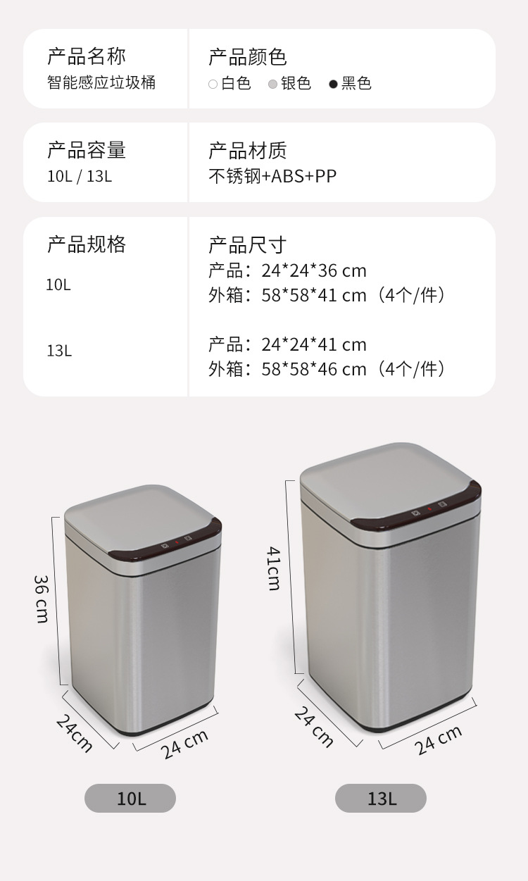 智能不锈钢垃圾桶10L/13L臭氧消毒收纳桶小容量自动感应垃圾桶
