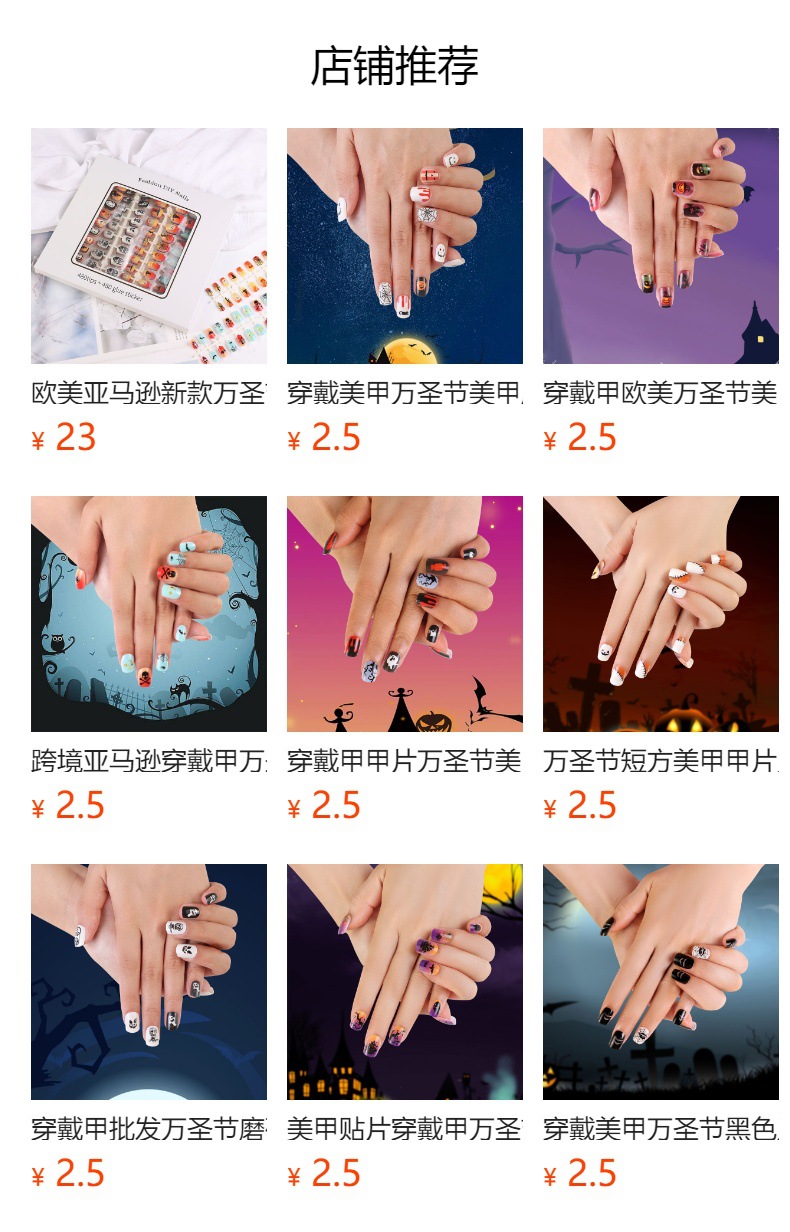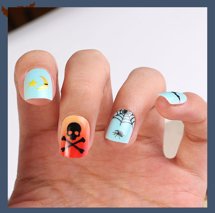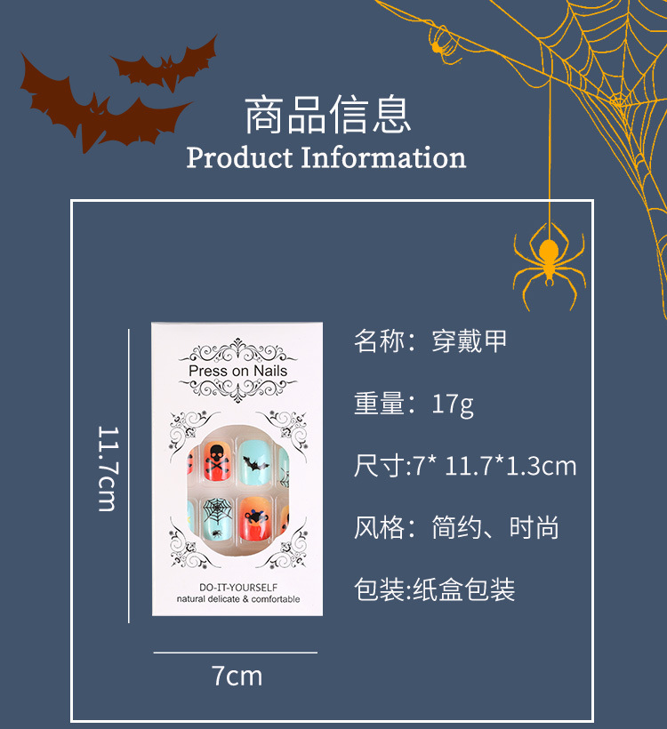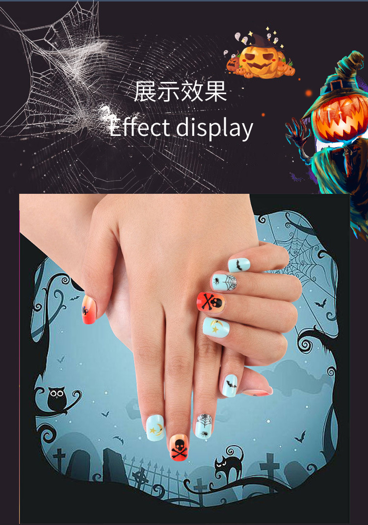 Uña de vestir Halloween serie negra francesa parche de uñas llama araña uña telaraña al por mayor
