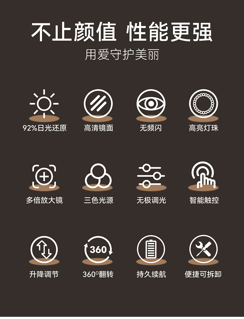 | Color | Color de cromo de 9 pulgadas (recargable + fuente de luz tricolor), color de cromo de 8 pulgadas (recargable + fuente de luz tricolor), negro de 8 pulgadas (recargable + fuente de luz tricolor) |