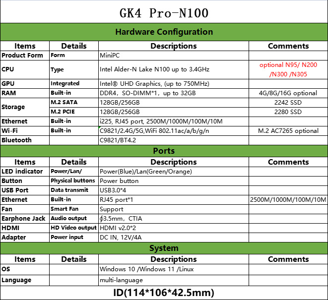 | Color | N95 + 0G + 0G SSD cuasi-sistema,N95 + 8G + 128GSSD,N95 + 8G + 256G SSD,N95 + 8G RAM + 500G SSD,N95 + 8G RAM + 1TB SSD,N95 + 16G + 256G SSD,N95 + SSD de 16G + 500G,N95 + 16G RAM + 1TB SSD |