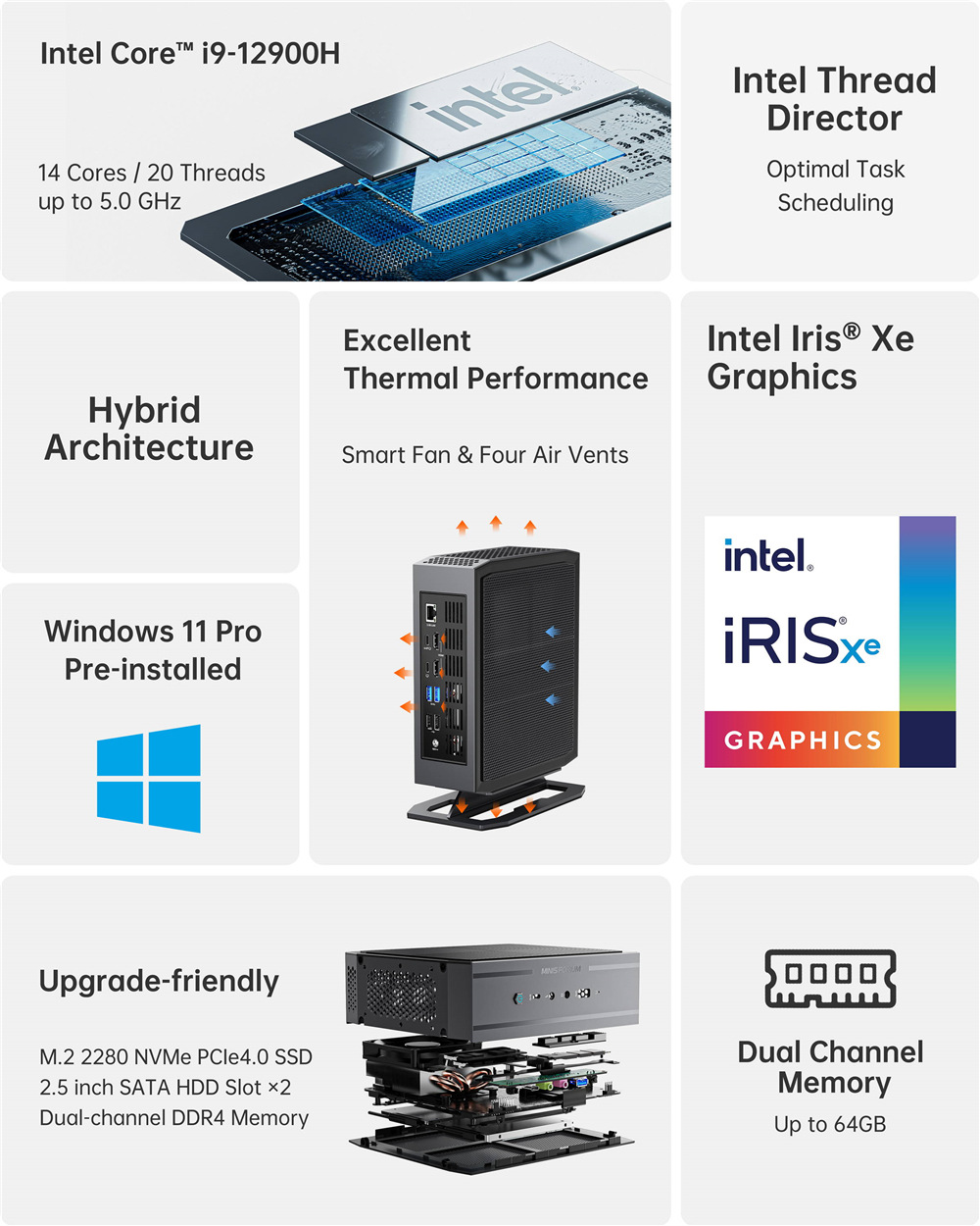 | Interfaz | HDMI× 2, Tipo-C × 3,USB3.2 × 2,USB2.0 × 2,RJ45 2,5 × 1 |