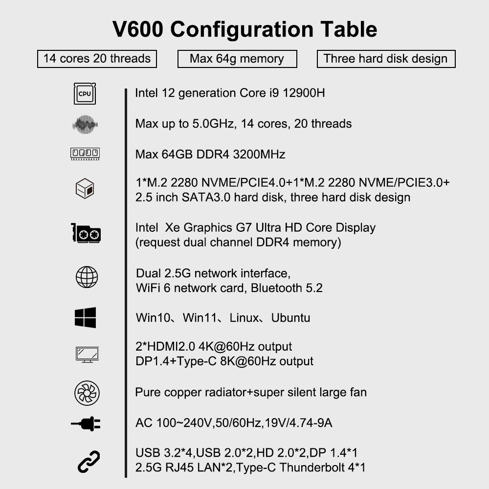 | Modelo | I5-1340P [nuevo núcleo de 13 generaciones],I7-1360P [nuevo núcleo de 13 generaciones],I5-1240 doble canal DDR4 3200Mhz,I7-1260P de doble canal DDR4 + m.22280,I7-12700H de doble canal DDR4 + m.22280,I9-12900H de doble canal DDR4 + m.22280 |