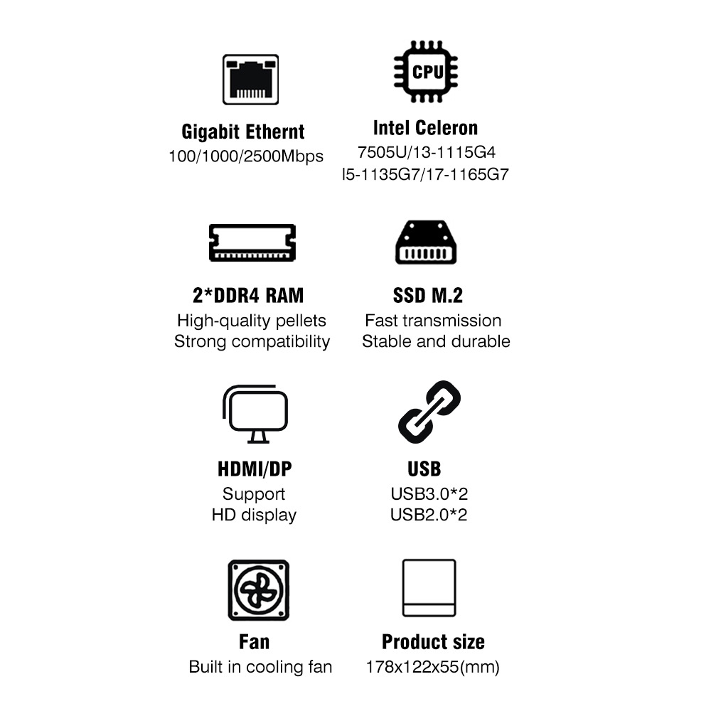| Color | 0 + 0 cuasi-sistema,4G DDR4 + 128G M.2 SSD,SSD 4G DDR4 + 256G M.2,8g DDR4 + 128g M .2SSD,8G DDR4 + 256G M.2 SSD,DDR4 de 8G + SSD M.2 de 512G,16GDDR4 + 128G M.2 SSD,16GDDR4 + 256G M.2 SSD,16GDDR4 + 512G M.2 SSD,16G DDR4 + 1T M.2 SSD,DDR4 de 32GB + SSD M.2 de 256G,32GB DDR4 + 512G M.2 SSD,32GB DDR4 + 1T M.2 SSD,64GB DDR4 + 512G M.2 SSD,64GB DDR4 + 1T M.2 SSD |