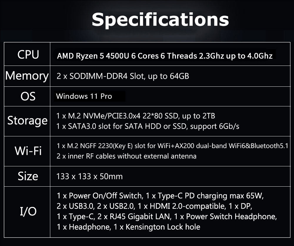 | Color | 4500U cuasi-sistema ninguna memoria ningún disco duro,4500U 8G DDR4 3200Mhz + 128G NVMe,4500U 8G DDR4 3200Mhz + 256G NVME,4500U 8G DDR4 3200Mhz + 512G NVME,4500U 8G DDR4 3200Mhz + 1TB NVME,4500U 16G DDR4 3200Mhz + 256G NVME,4500U 16G DDR4 3200Mhz + 512G NVME,4500U 16G DDR4 3200Mhz + 1TB NVME,4500U 32G DDR4 3200Mhz + 512G NVME,4500U 32G DDR4 3200Mhz + 1TB NVME,4500U 32G DDR4 de 3200MHz + 2TB NVME,4500U 64G DDR4 3200Mhz + 1TB NVME,4500U 64G DDR4 3200Mhz + 2TB NVME |