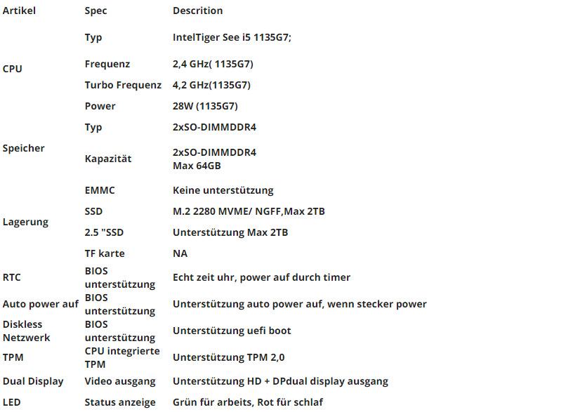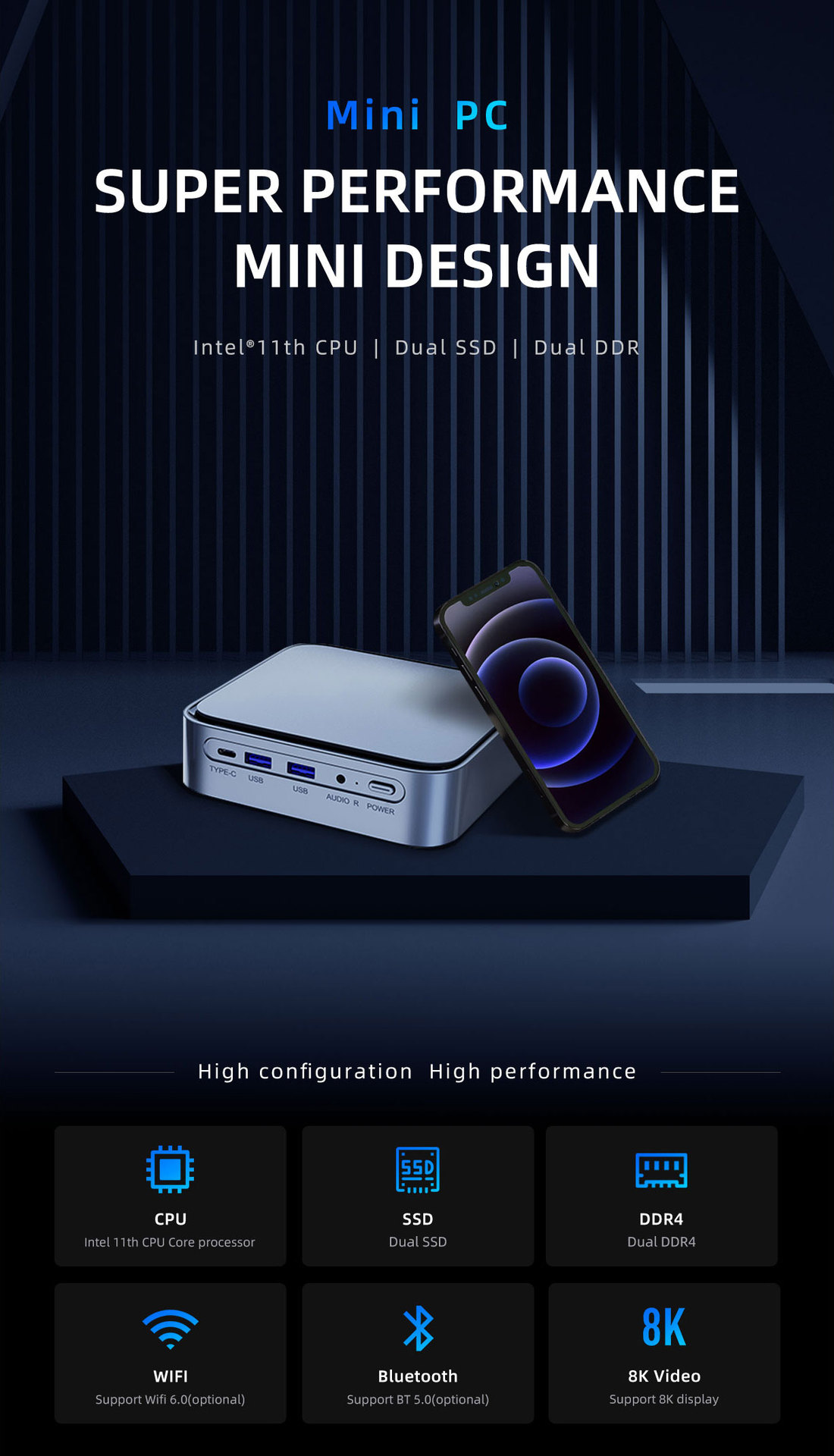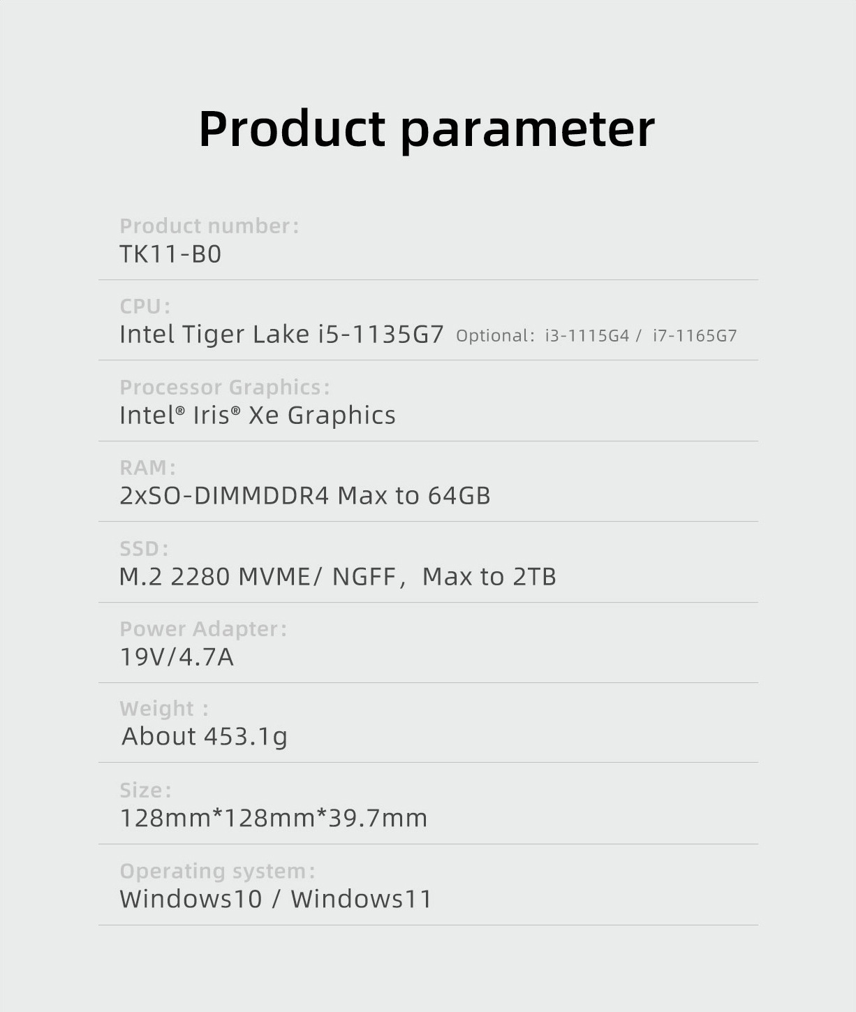 | Color | Cuasi-sistema de i5 1135G7 0 + 0G,I5 1135G7 8G DDR4 + 128G M.2,I5 1135G7 8G DDR4 + 256G M.2,I5 1135G7 16G DDR4 + 512G M.2,I5 1135G7 32G DDR4 + 1T M.2,I5 1135G7 64G DDR4 + 2T M.2 |