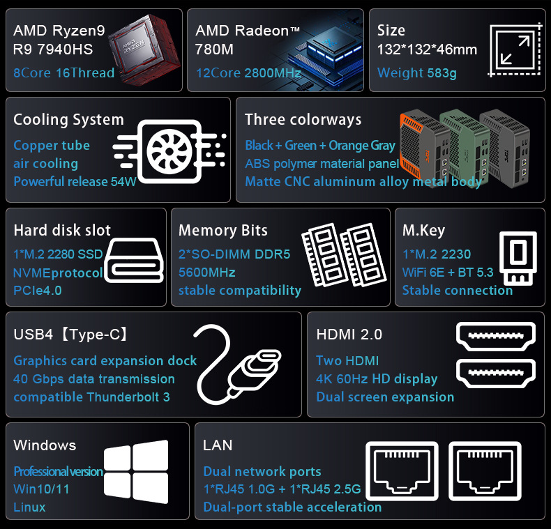 | Colores | R9 7940HS 0 0 sistema de barebación,R9 7940HS 8+500,R9 7940HS 8+1T,R9 7940HS 16+500,R9 7940HS 16+1T,R9 7940HS 16+2T,R9 7940HS 32+500,R9 7940HS 32+1T,R9 7940HS 32+2T,R9 7940HS 64+1T,R9 7940HS 64+2T |