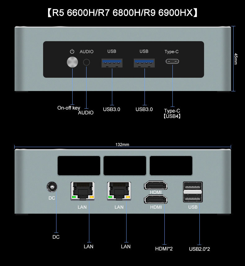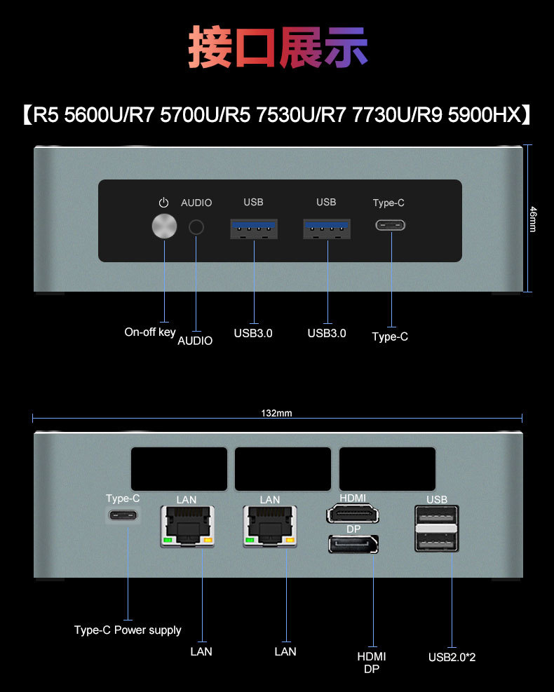 | Interfaz | Type-C/LAN/HDMI/DP/USB2.0/USB3.0/AUDIO |