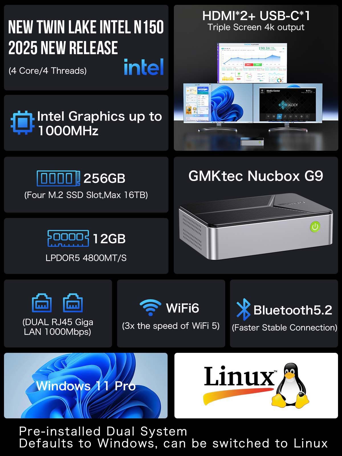 | Modelo | GMK G9 intel N150 4 posiciones |