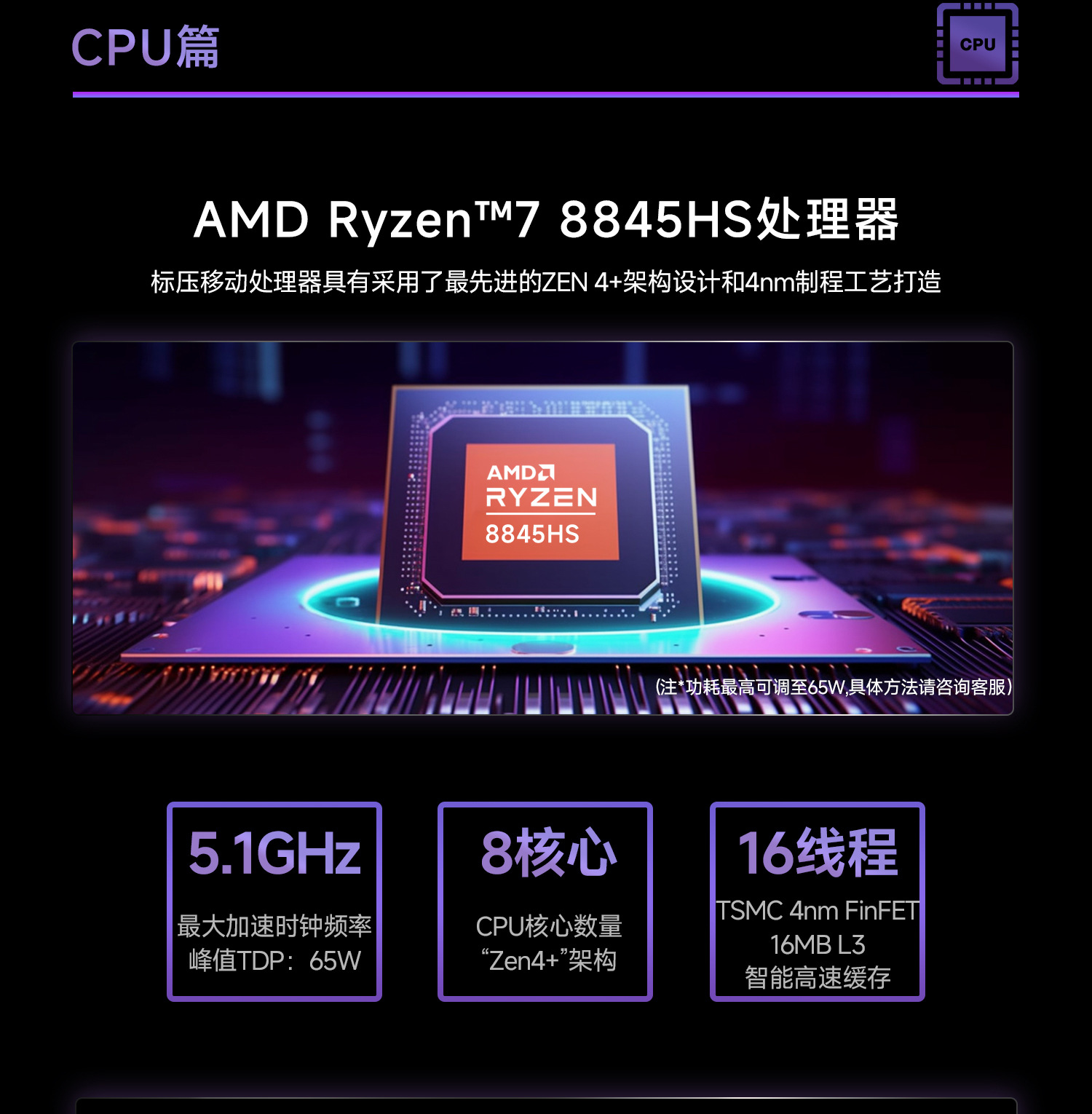 | Tipo de CPU | AMD Ryzen 7 8845HS |