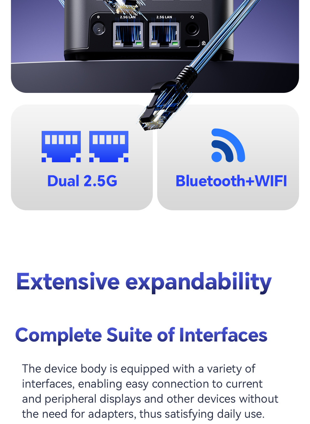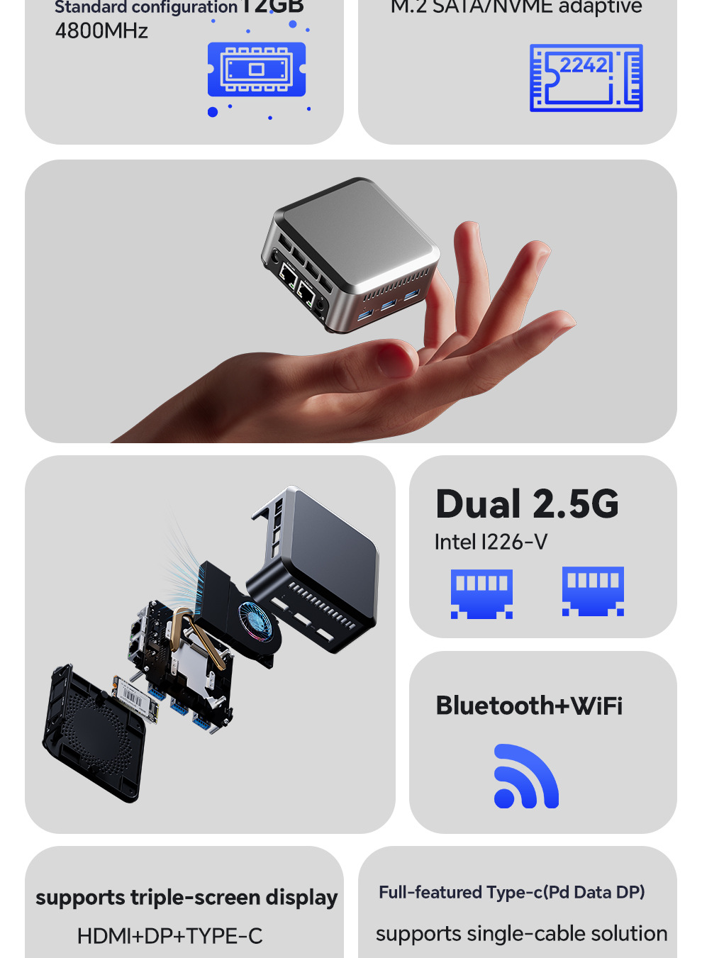 | Interfaz | HDMI+DP+TYPE-C+Dual 2.5G*2 |