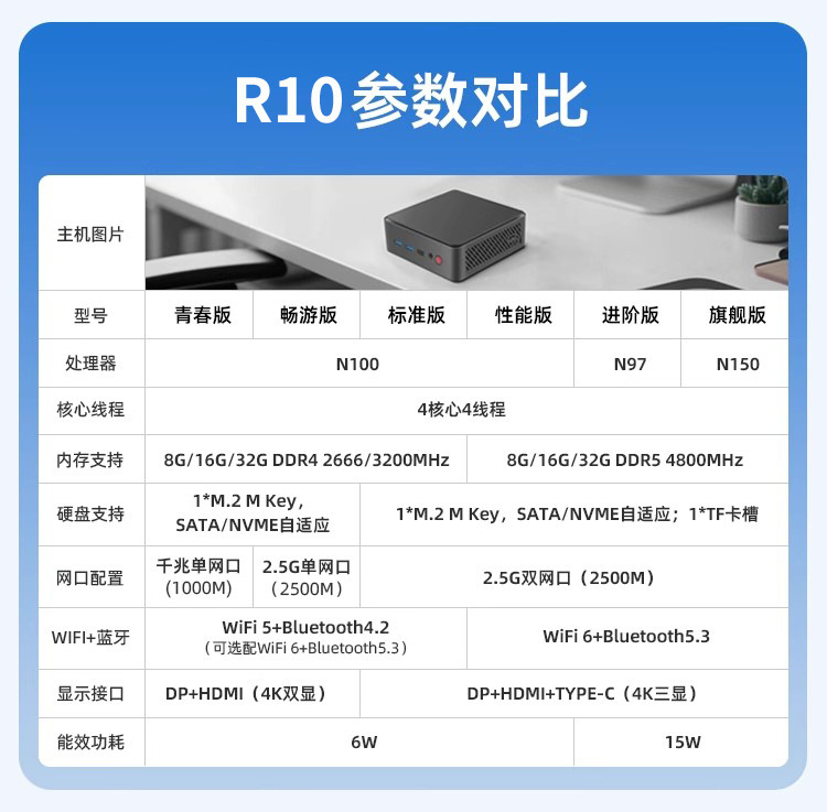 | Colores | R10 N100 0 0 Sistema de barebón,R10 N100 8G+128G,R10 N100 8G+256G,R10 N100 8G+512G,R10 N100 8G+1TB,R10 N100 16G+256G,R10 N100 16G+512G,R10 N100 16G+1TB,R10 N100 16G+2TB,R15 N150 0 0 Sistema de barebación,R15 N150 8G+128GB,R15 N150 8G+256GB,R15 N150 8G+512GB,R15 N150 8G+1TB,R15 N150 16G+256GB,R15 N150 16G+512GB,R15 N150 16G+1TB,R15 N150 16G+2TB |