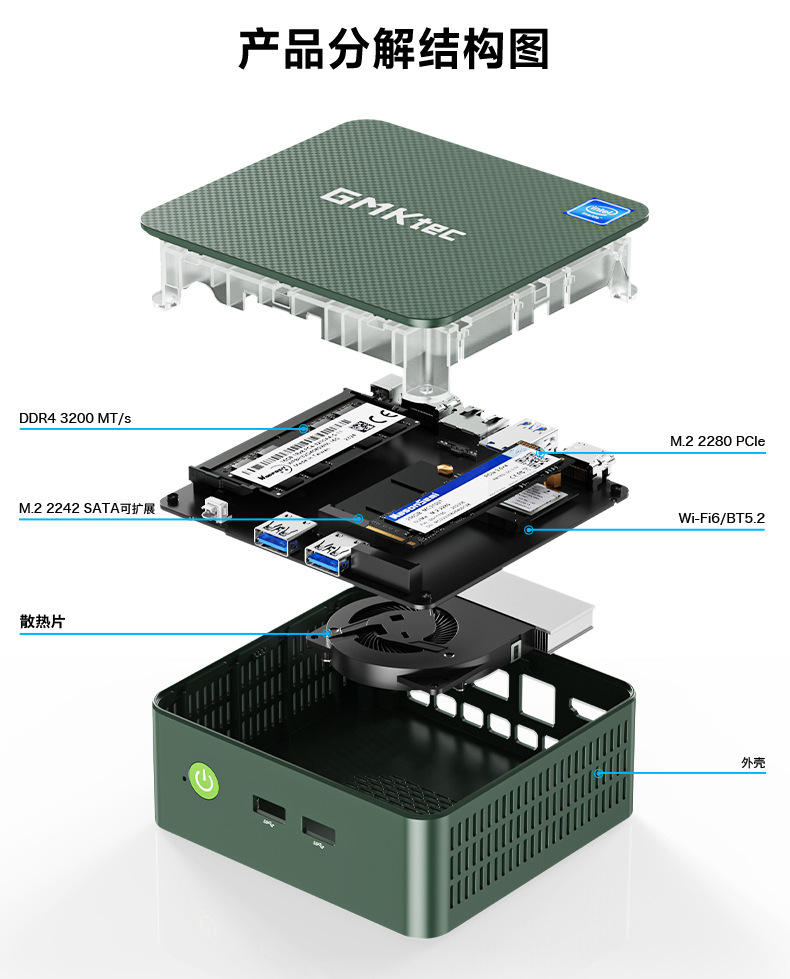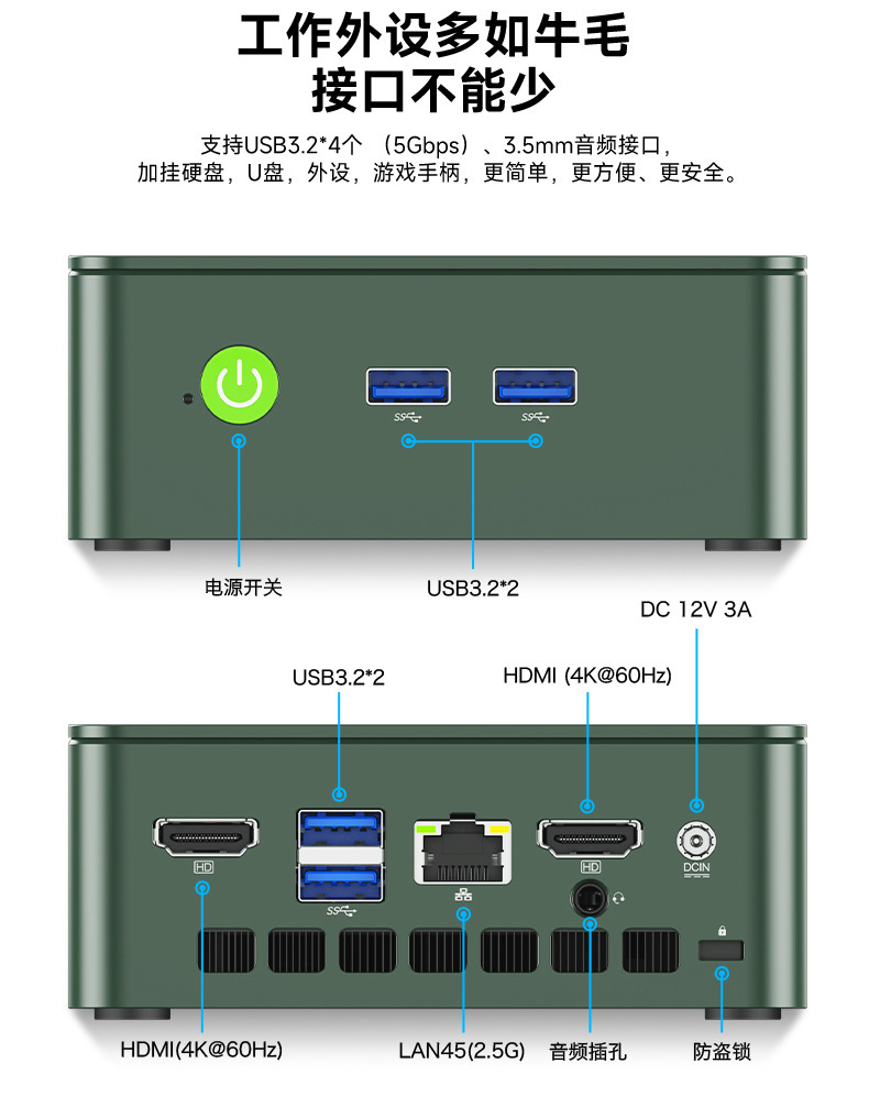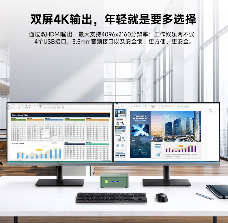 图形输出:通过双HDMI输出,最大支持4096x2160分辨率;
