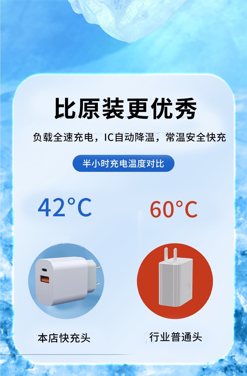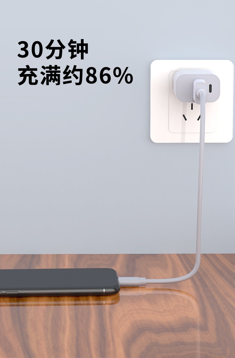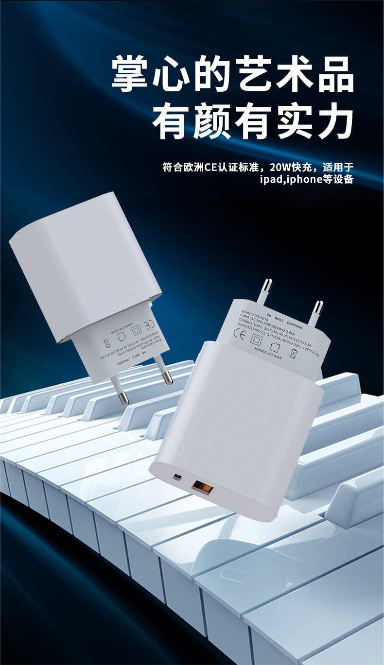 2、此款手机充电器为PD-typec接口输出总共功率20W,可以同时稳定充二台手机。