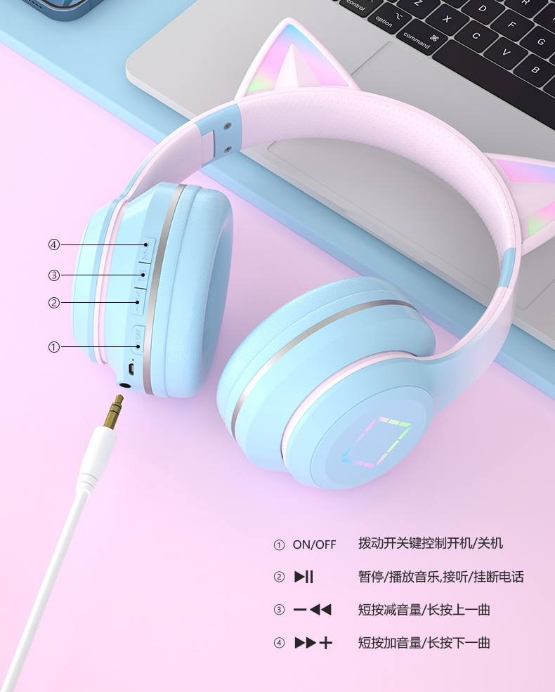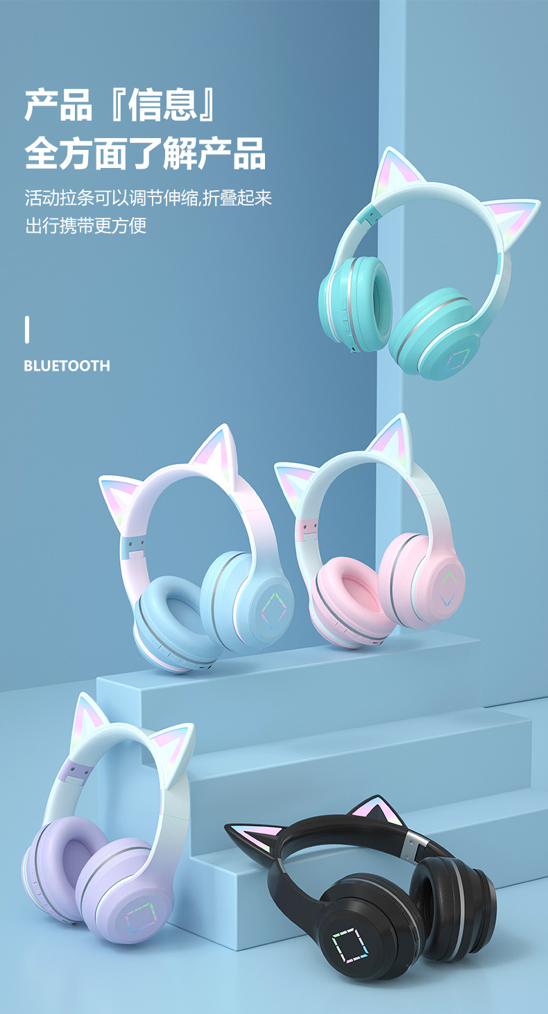 | Gradiente Bluetooth montado en la cabeza | Orejas de gato degradadas Bluetooth montadas en la cabeza |
