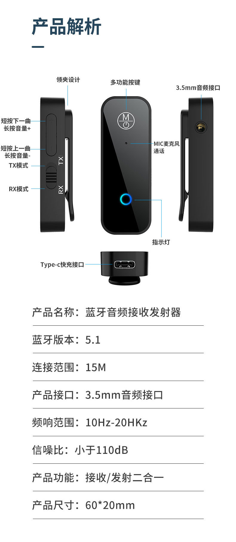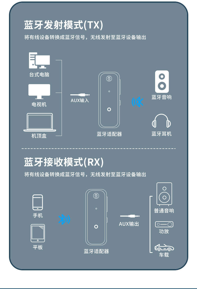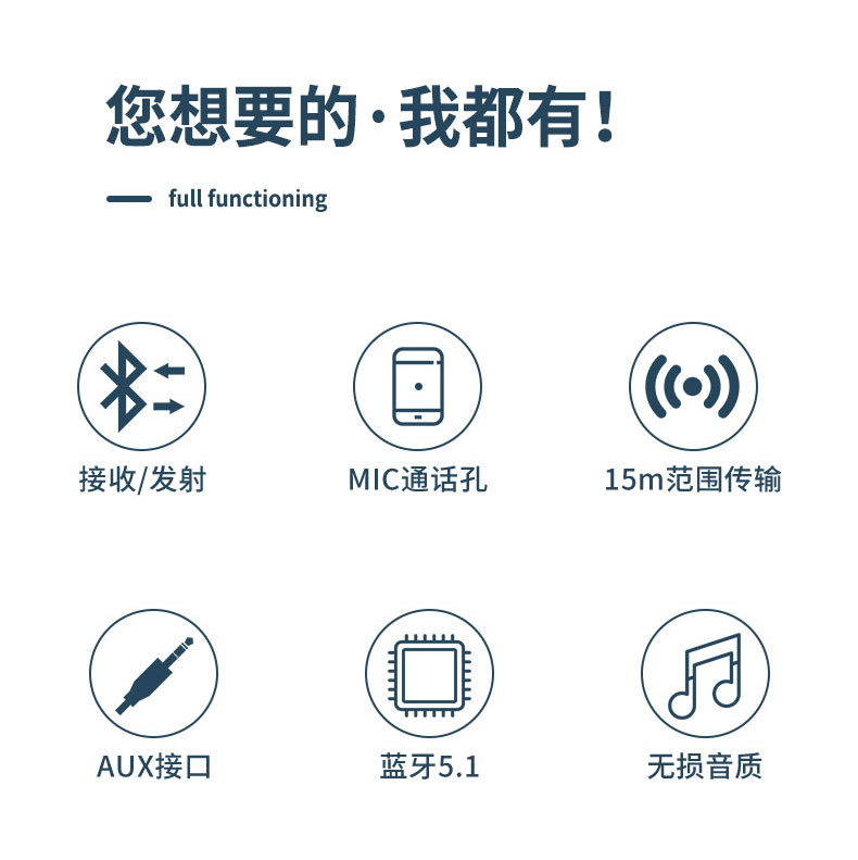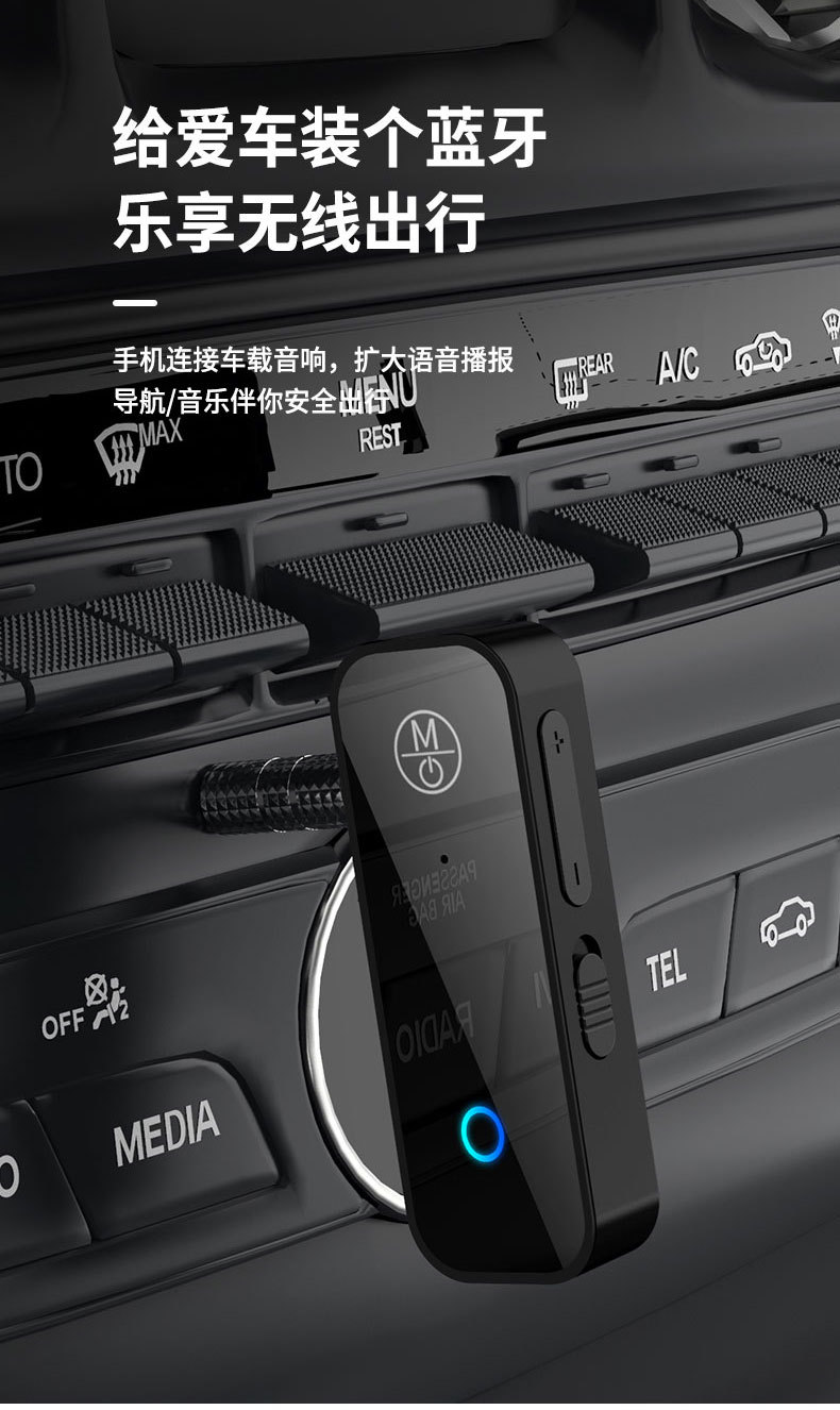 产品功能:蓝牙接收器、车载蓝牙接收器、汽车蓝牙接收器、AUX蓝牙接收器、音频适配器