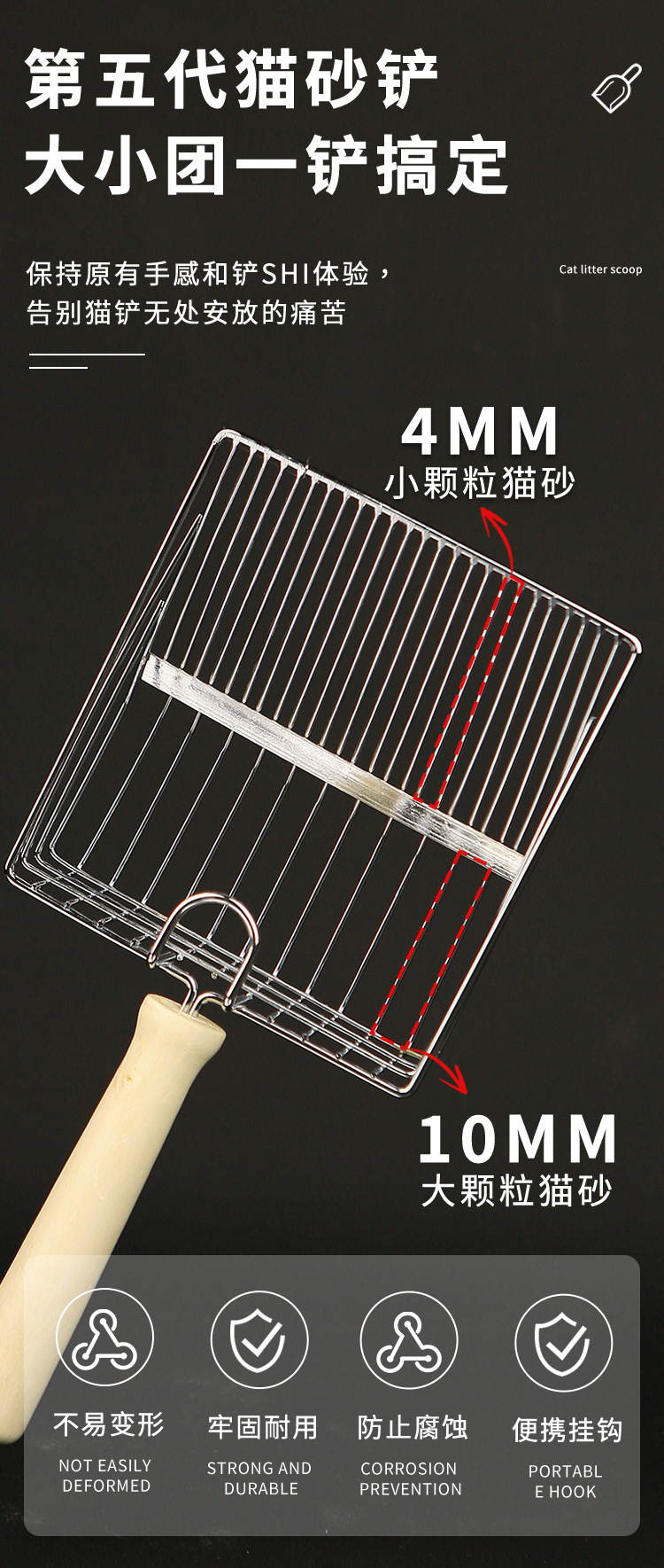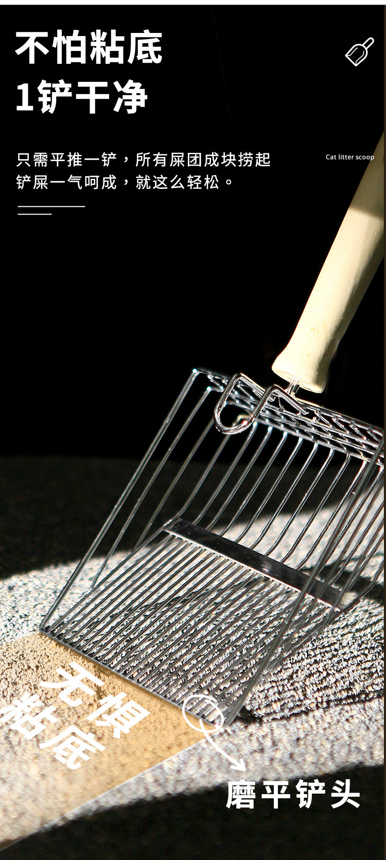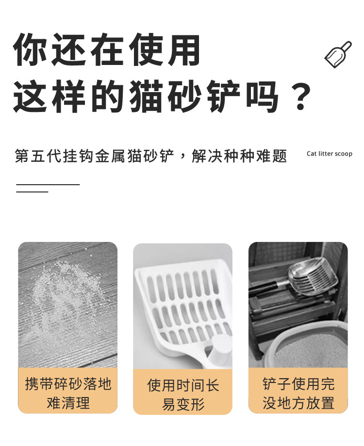 Pala de mierda de gato de arena para gatos Pala de arena de gato de metal no de acero inoxidable Pala de gato de agujero pequeño grande Pala de mierda Productos de limpieza