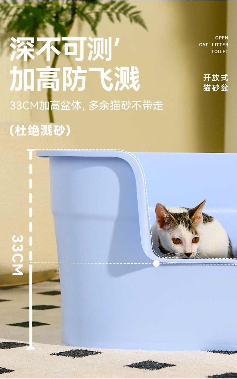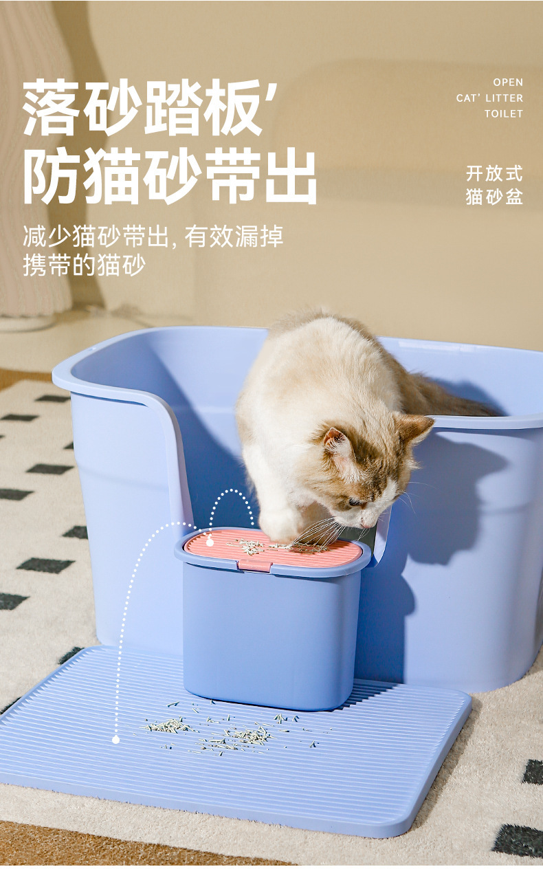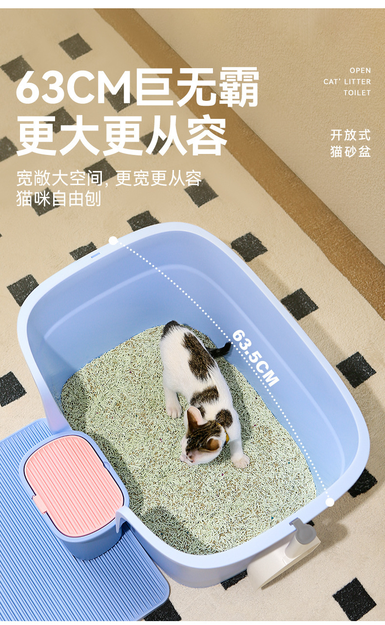 Lavabo de arena para gatos, inodoro grande y completamente abierto para gatos, desodorante y a prueba de salpicaduras, lavabo de arena para gatos semicerrado, lavabo de heces para gatos