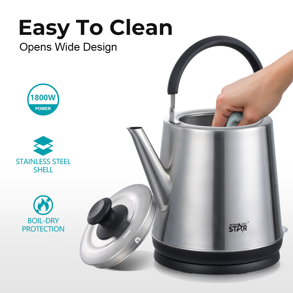电茶壶,ST-6043,电压:AC 220V-240V,功率:1800W,容量:5L,材质:不锈钢,防干烧,尺寸:190*220*380mm
