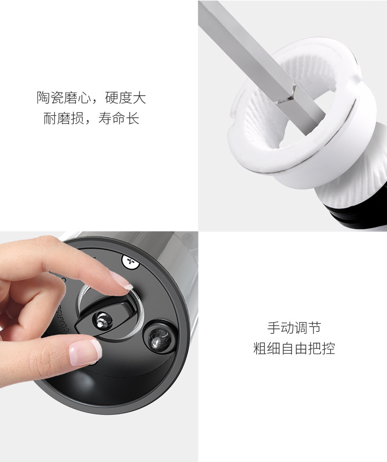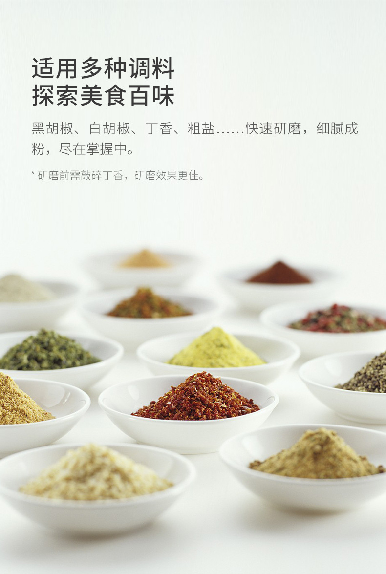 答:研磨器实物不包含食材配料的,主图、SKU图、详情页图和视频里面的配料仅用于效果展示。