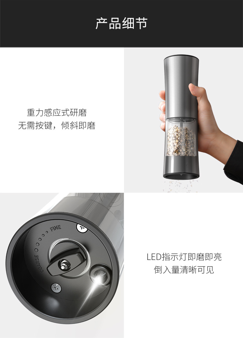 4,电动胡椒研磨器起订量(Logo/颜色/款式)多少?