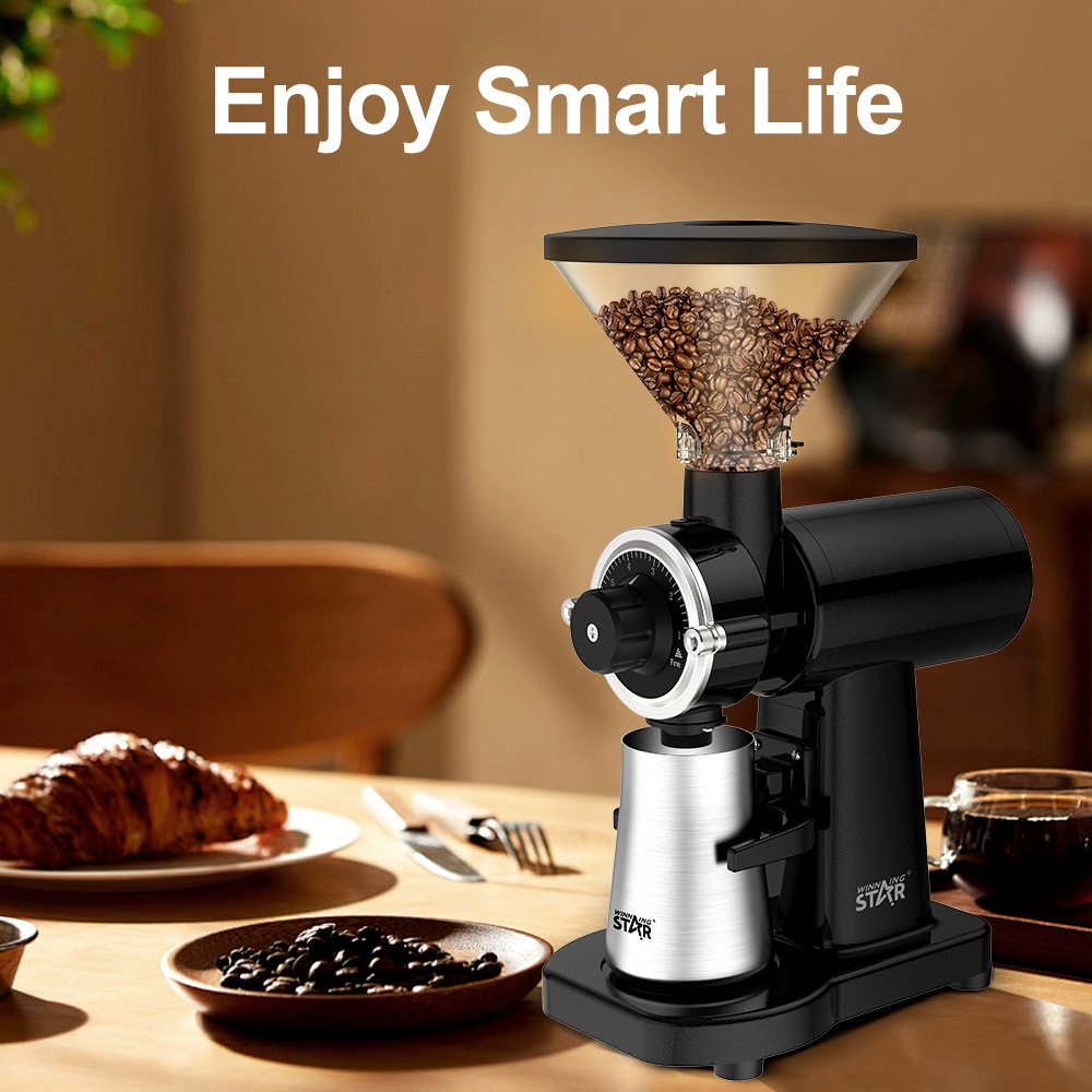 咖啡研磨机,ST-9821,电压:AC220-240V,50Hz,功率:180W,容量:250g,纯铜电机,7档研磨设置,尺寸:220*120*360mm