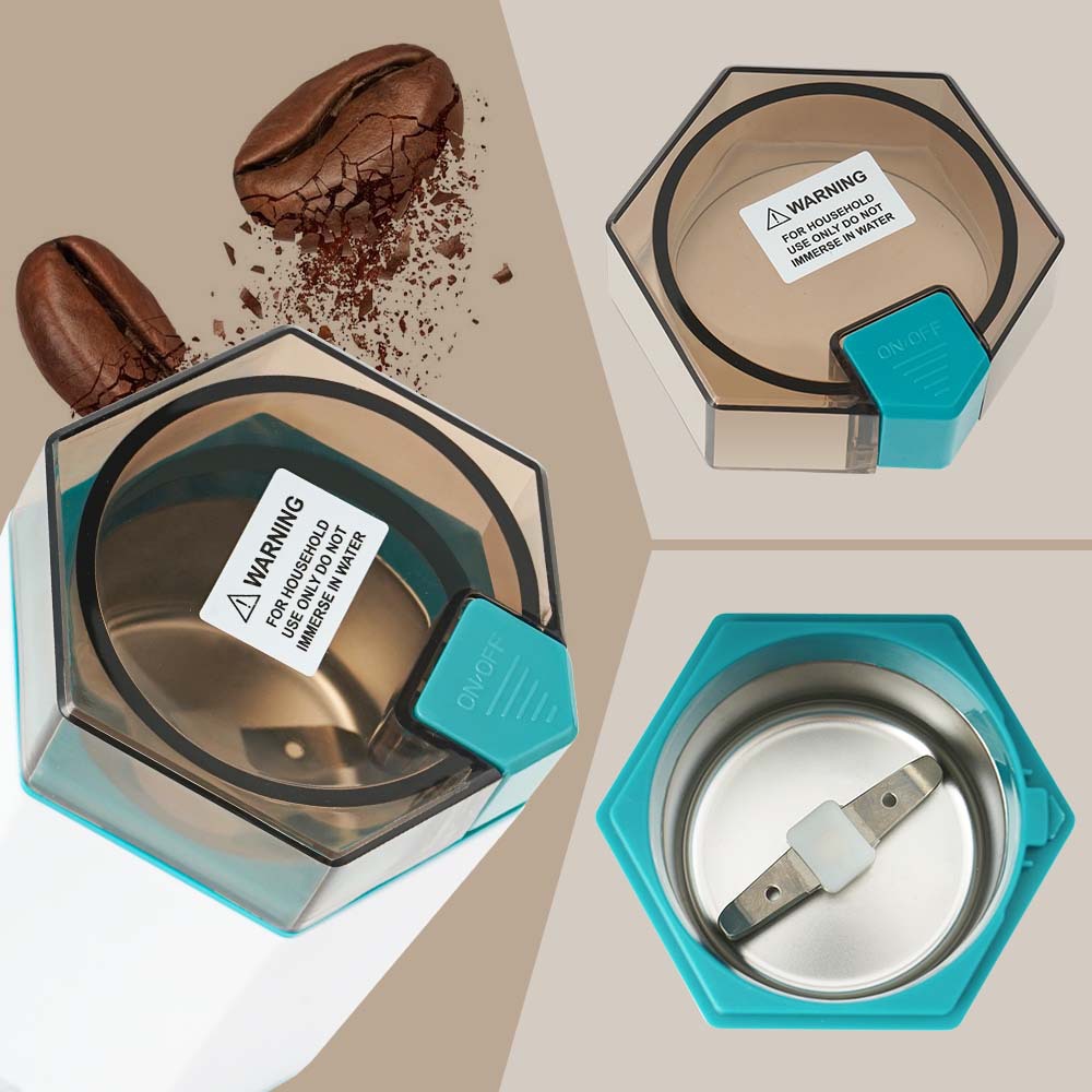 咖啡研磨机,ST-9725,电压:AC220-240V,功率:150W,容量:50g,材质:304不锈钢,纯铜电机,尺寸:150*75mm