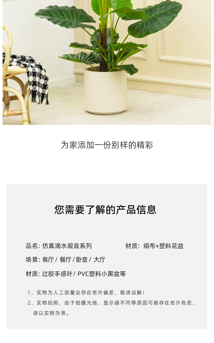 | Colores | Simulación goteo Guanyin 60cm pequeña planta en maceta,Simulación de goteo Guanyin 120cm,Simulación de goteo Guanyin 150cm,Simulación de goteo Guanyin 180cm,Simulación de goteo Guanyin 210cm |
