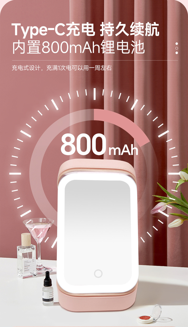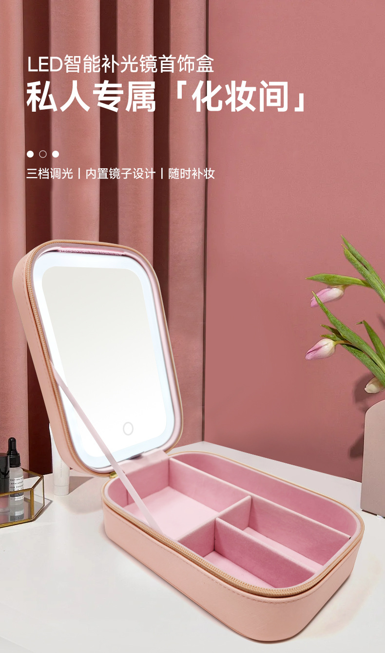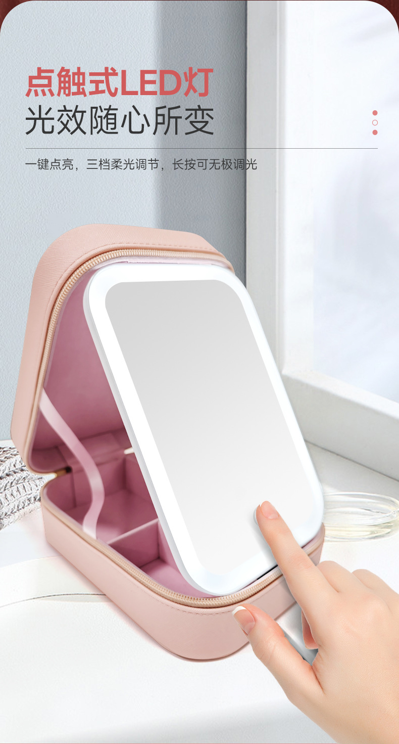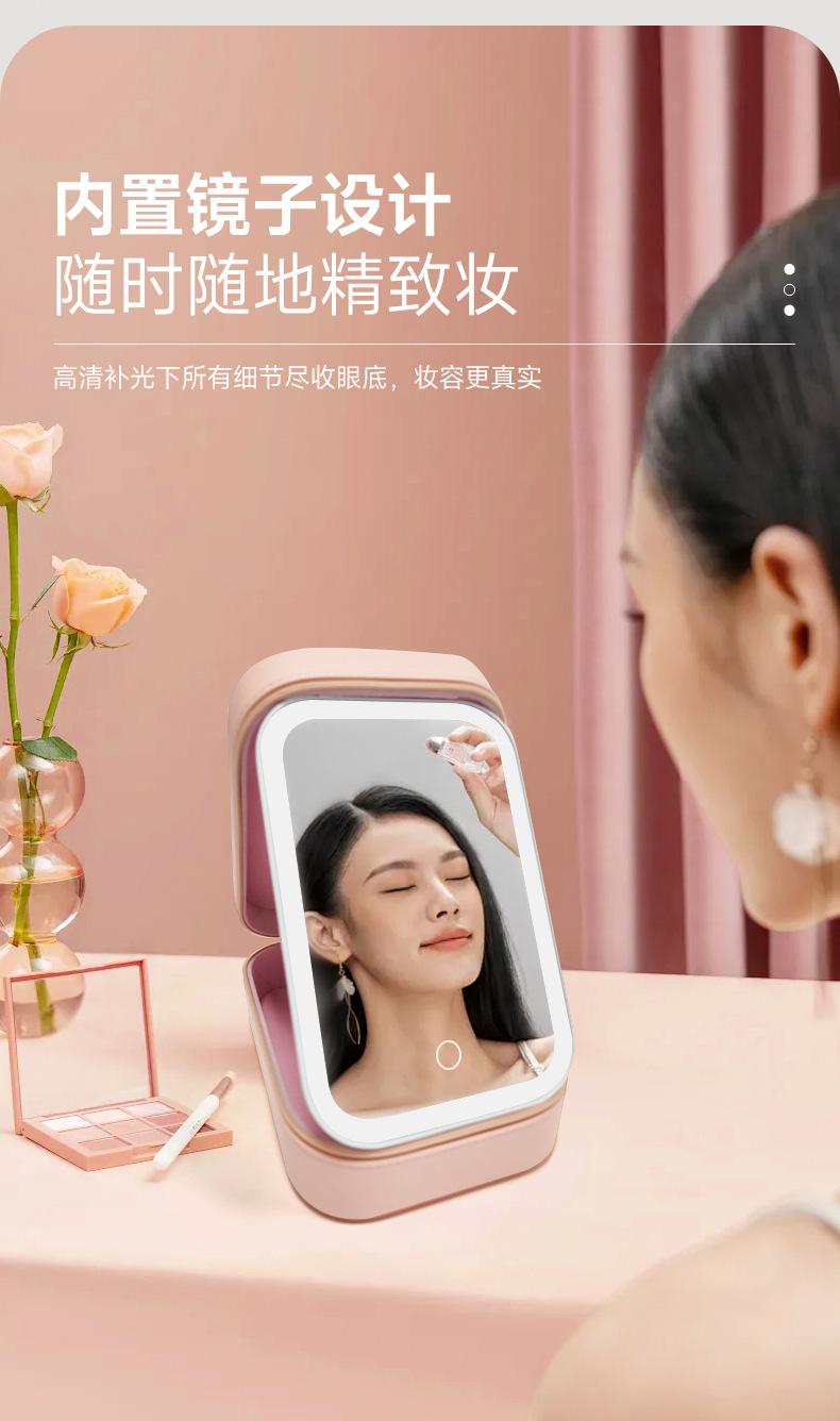 Bolsa de almacenamiento de cosméticos de espejo de una cara LED de alta calidad caja de almacenamiento a prueba de polvo de espejo de maquillaje portátil con luz