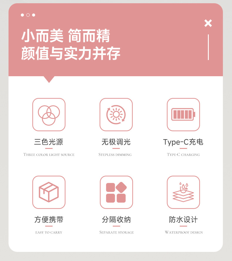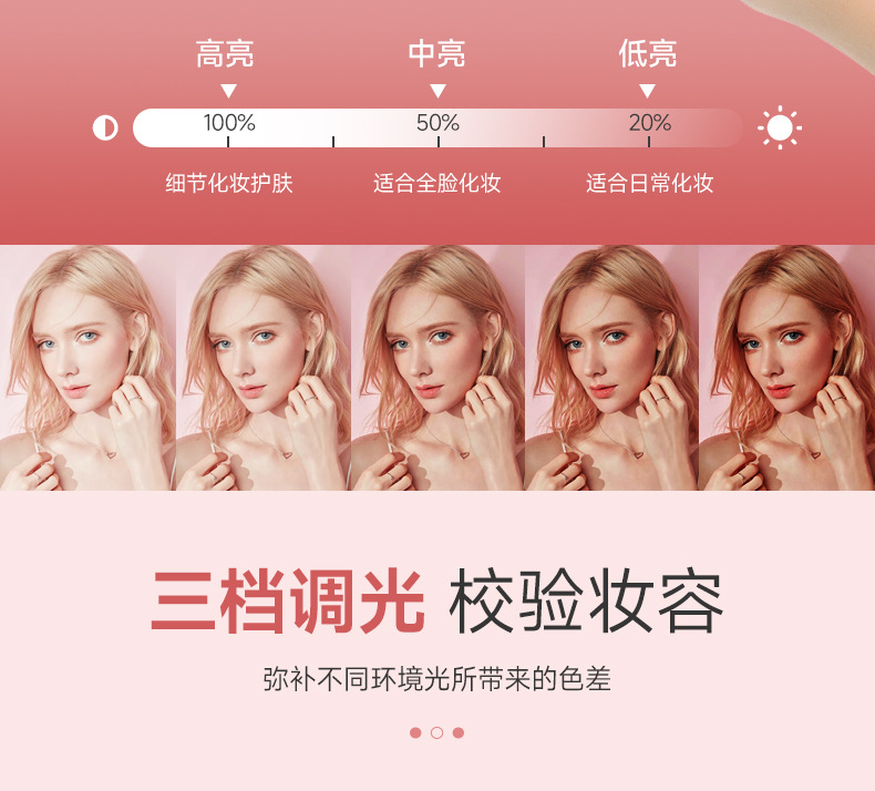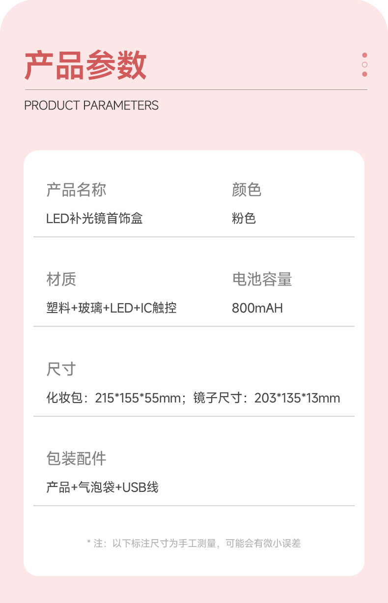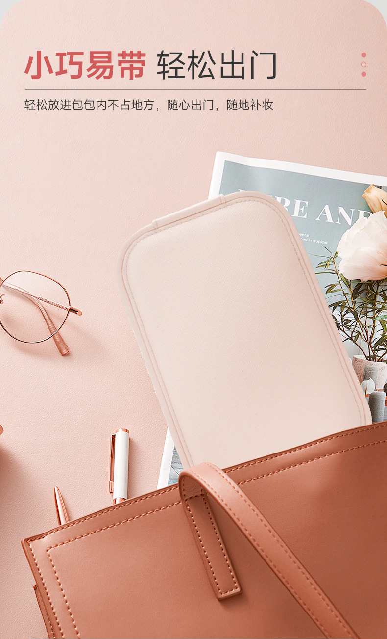 Bolsa de almacenamiento de cosméticos de espejo de una cara LED de alta calidad caja de almacenamiento a prueba de polvo de espejo de maquillaje portátil con luz
